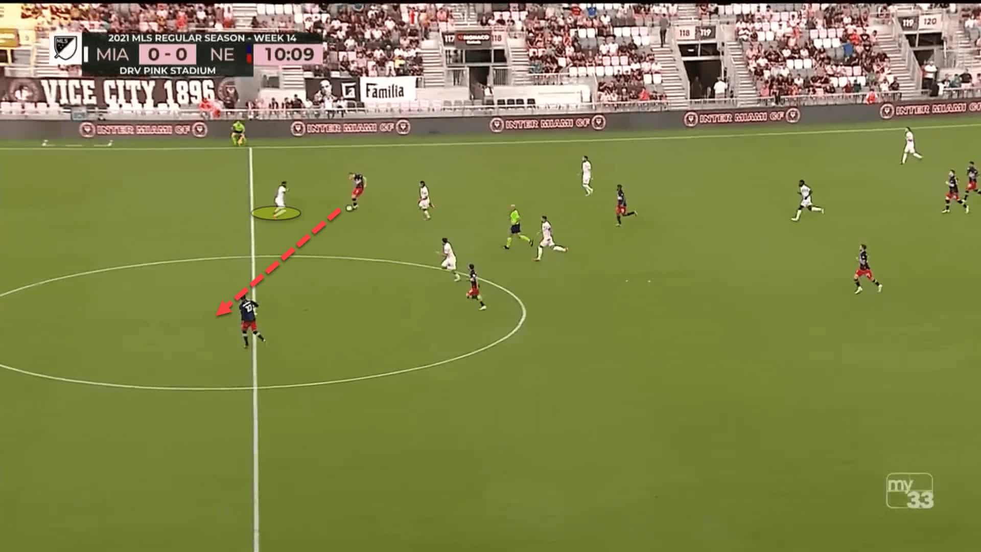 New England scored from this situation. Luckily for Miami, it was ruled as marginally offside, but the Revs scored numerous goals from defensive transitions shortly after as Miami had not learned their lesson.