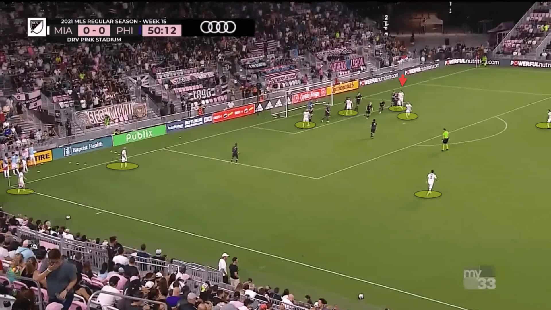 One of the reasons for this is the team’s poor occupation of space. Miami tend to pack the box and hit balls into the penalty area from deeper positions without any real thought process behind it. Unless the cross into the area is pinpoint, this is far too easy to defend against.