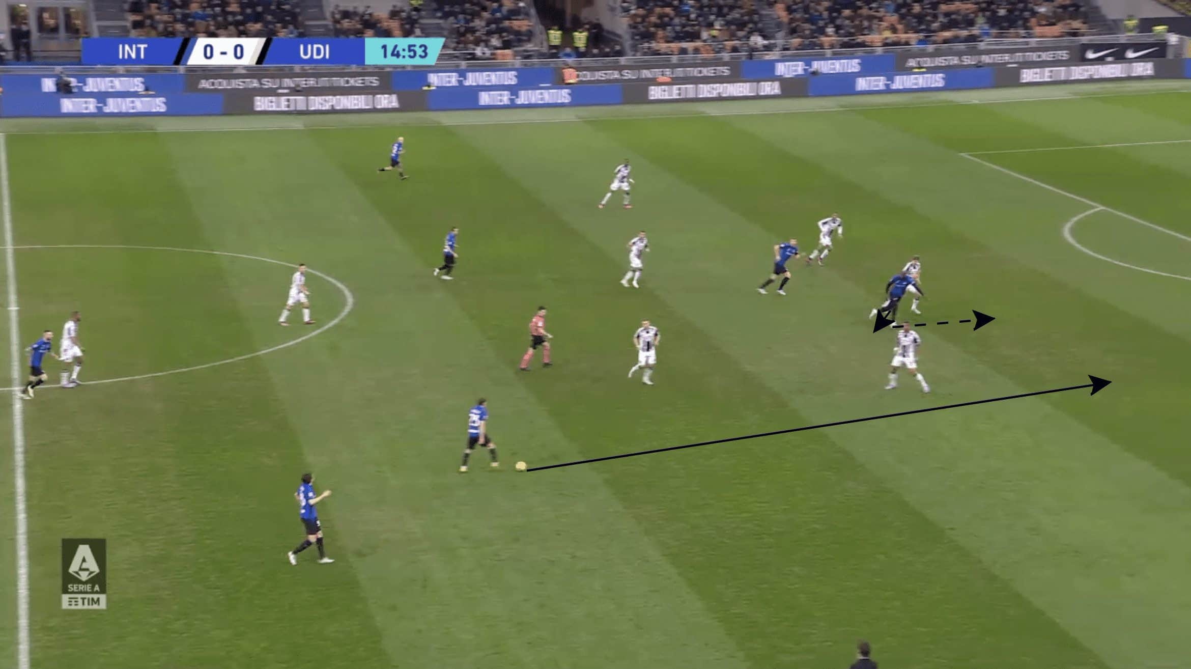 Although Lukaku has developed a method that allows him to use his physical attributes to maintain a controlled touch, the type of passes played to him have also contributed to this. Under both Inzaghi and Conte, the passes played to Lukaku have been driven on the ground or firm passes that are slightly elevated, allowing him to take advantage of his lowered centre of gravity.
