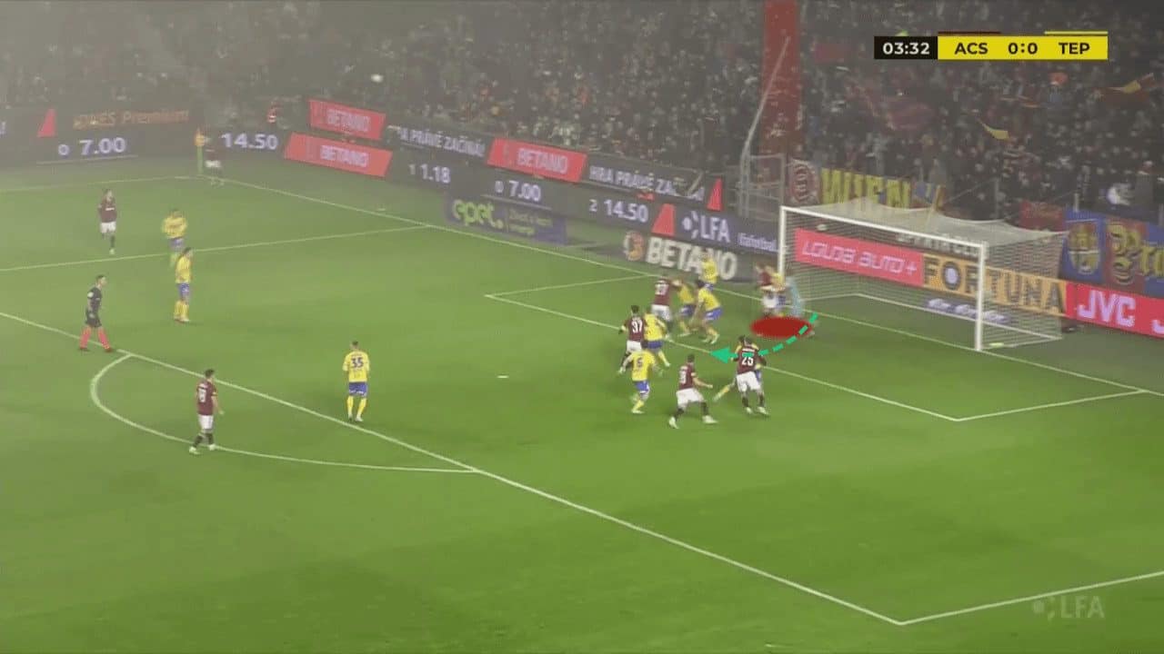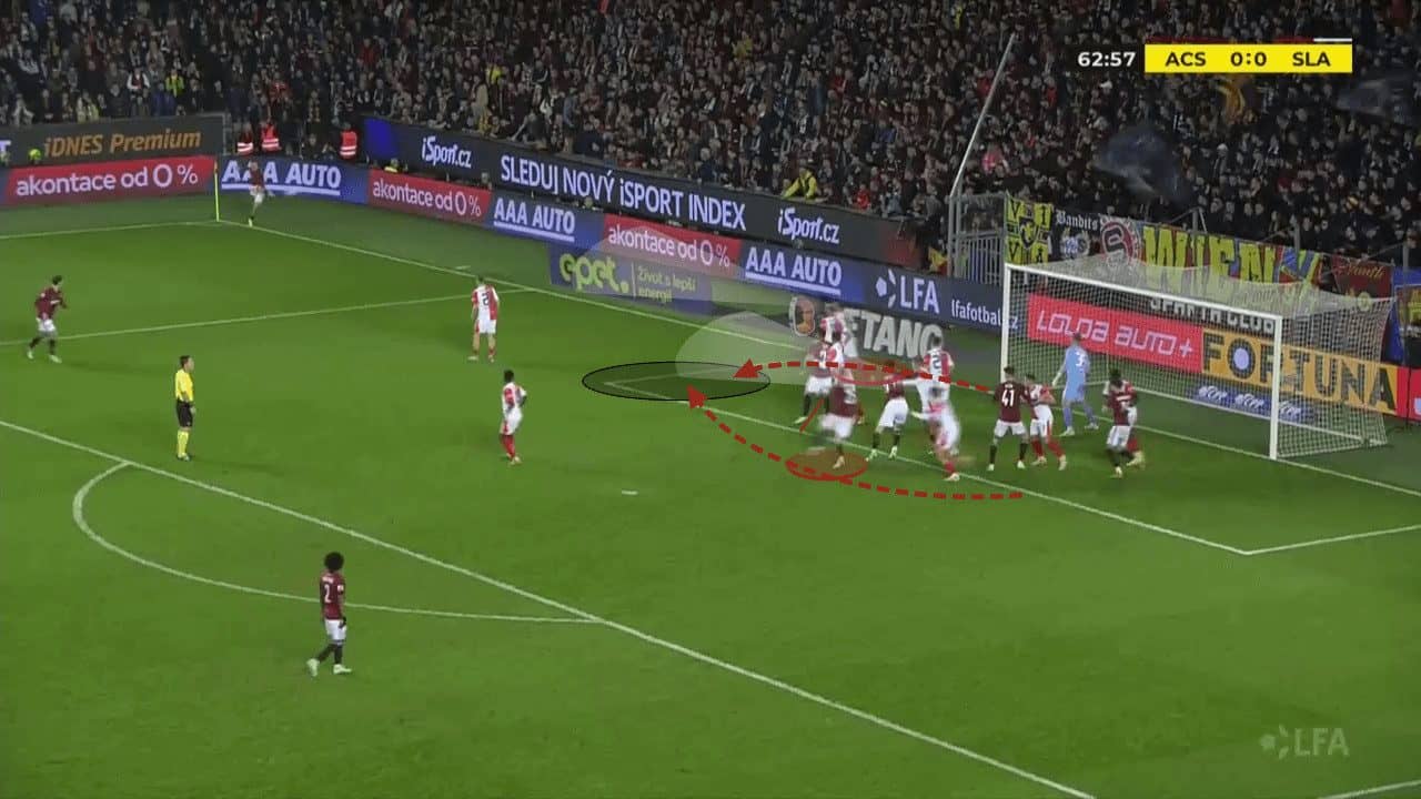 One thing that immediately stands out when you lay your eyes on Sparta Praha’s set plays is their dominance in the penalty area after the initial duel.