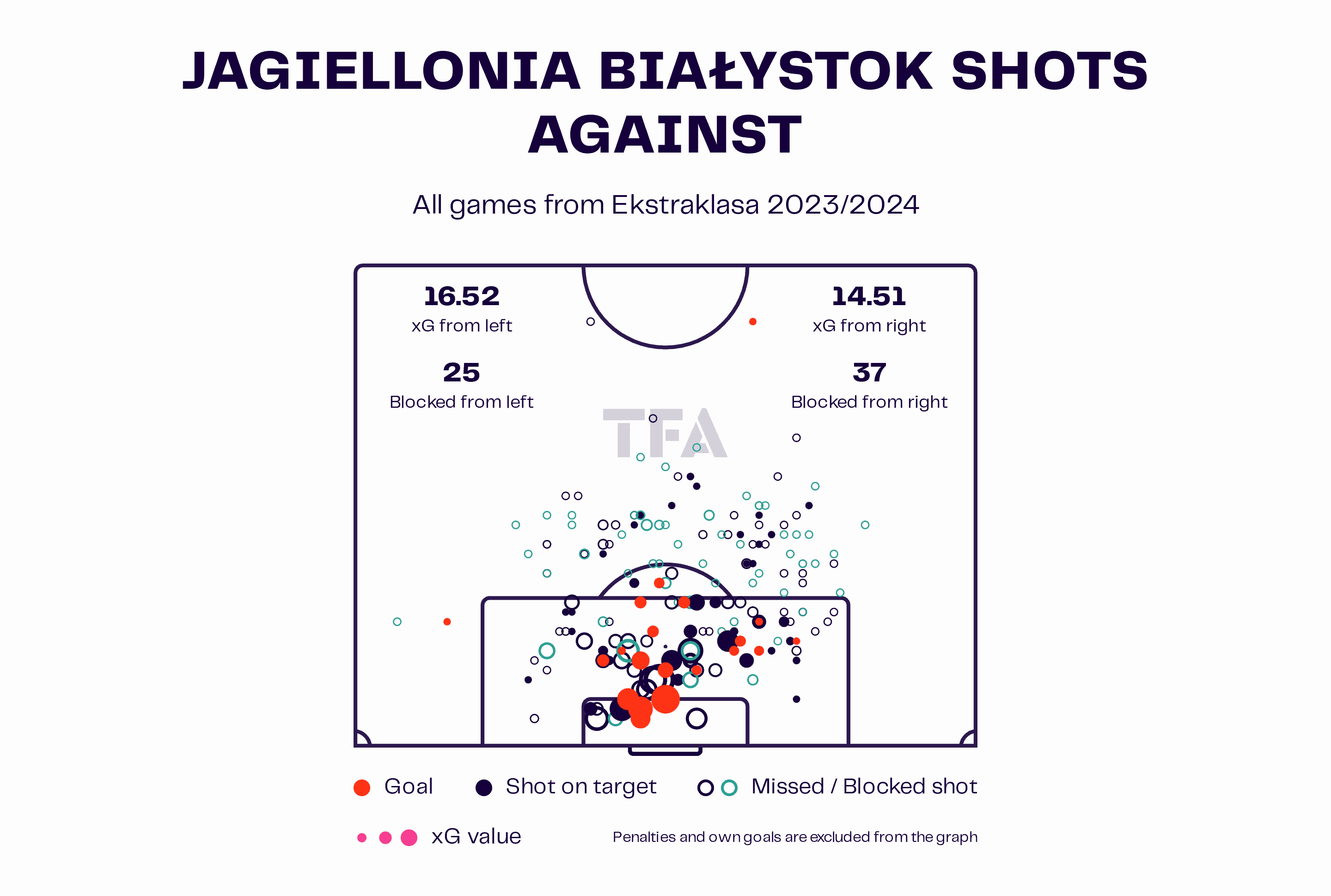 This would majorly contribute to Jagiellonia exceeding their xG by 11.6 goals.