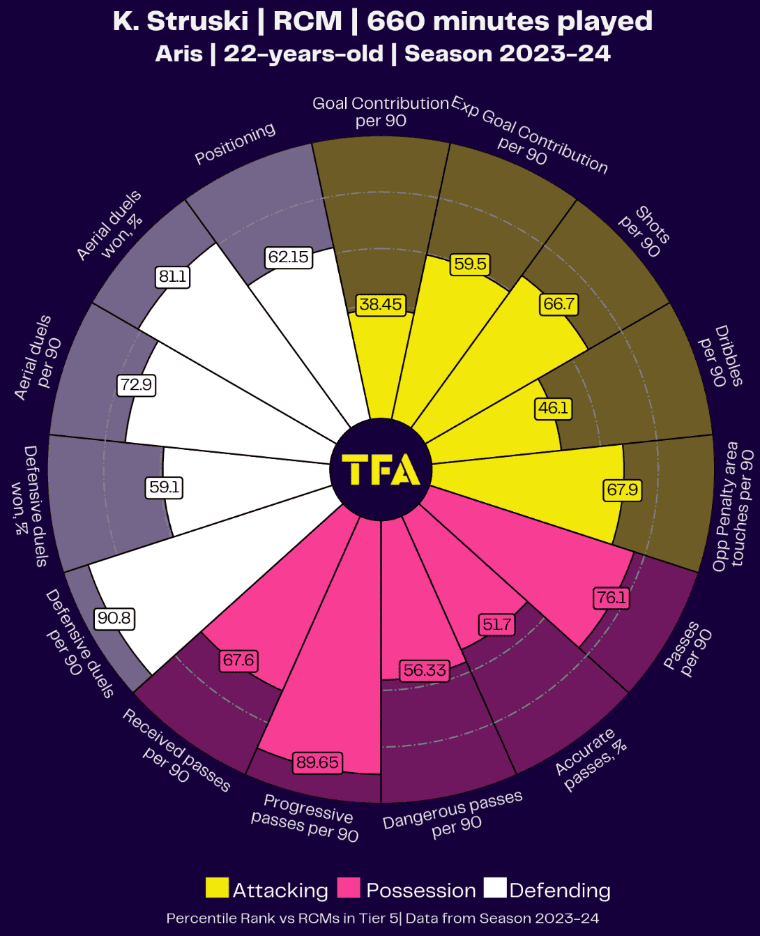 The other player we will look at in some more detail is 22-year-old Polish central midfielder Karol Struski.