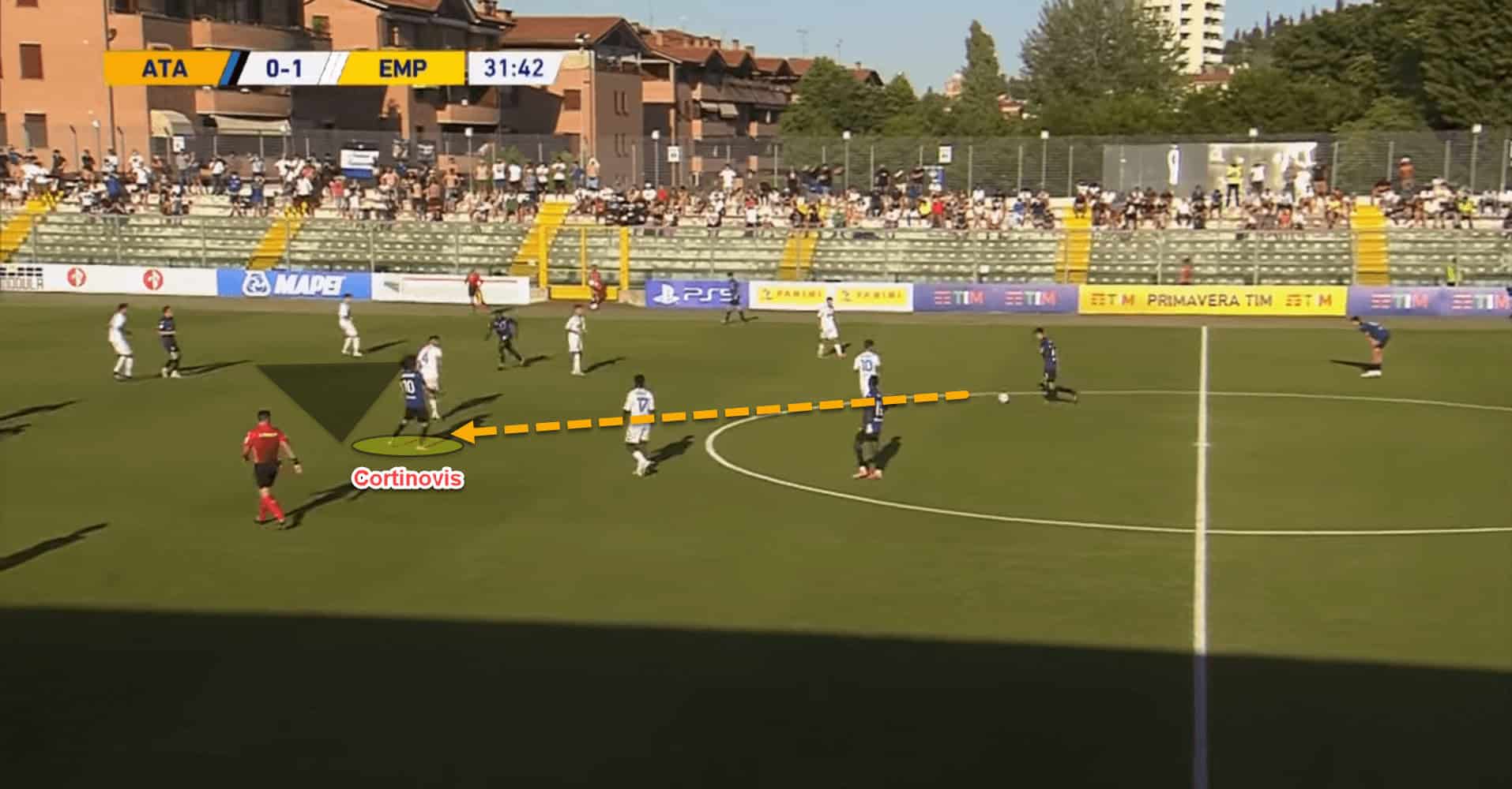 The Atalanta young star’s footballing intelligence and tactical nous stands out when observing him on the football pitch. Often, Cortinovis will rotate and interchange positions with ball-near teammates to pick up possession in different areas of the pitch, making him less predictable and harder to defend against.