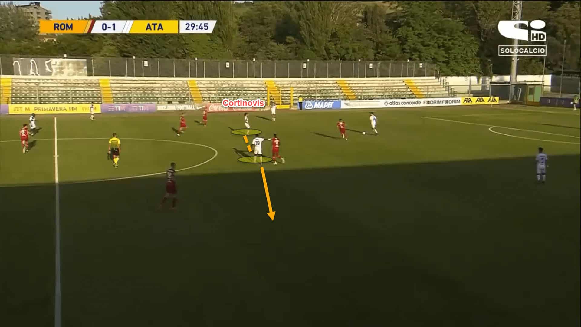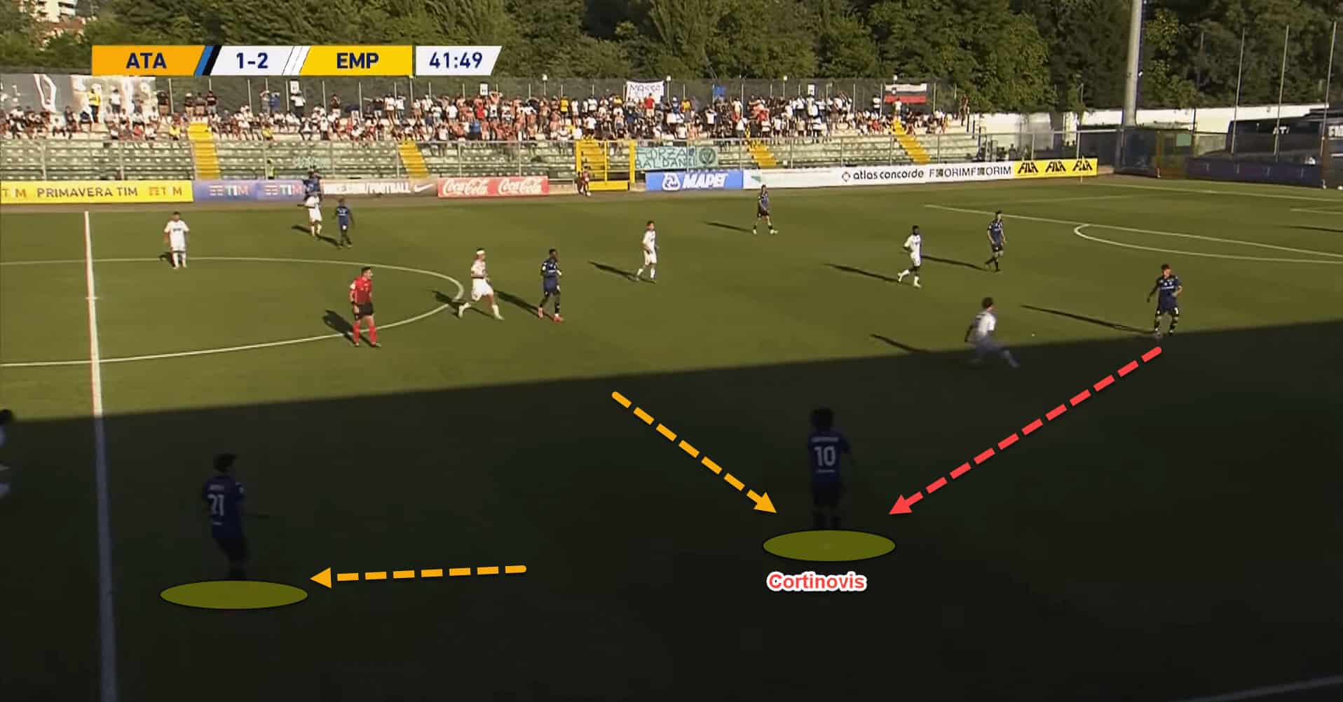 This lack of intelligent runs and cooperation from the U19s forward line can often contribute to the lack of end product that Cortinovis has been showing in his assist numbers. With players like Duvan Zapata, Luis Muriel, and even Pessina in the first-team, Cortinovis could potentially have a field day.