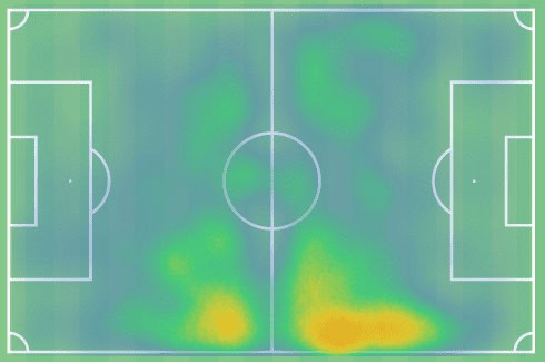 This can be quite common with young players. Often, they are shoehorned into wider positions instead of being cast into the deep end in the core of the team. His deployment on the right can be seen from the player’s heat map from the previous campaign.