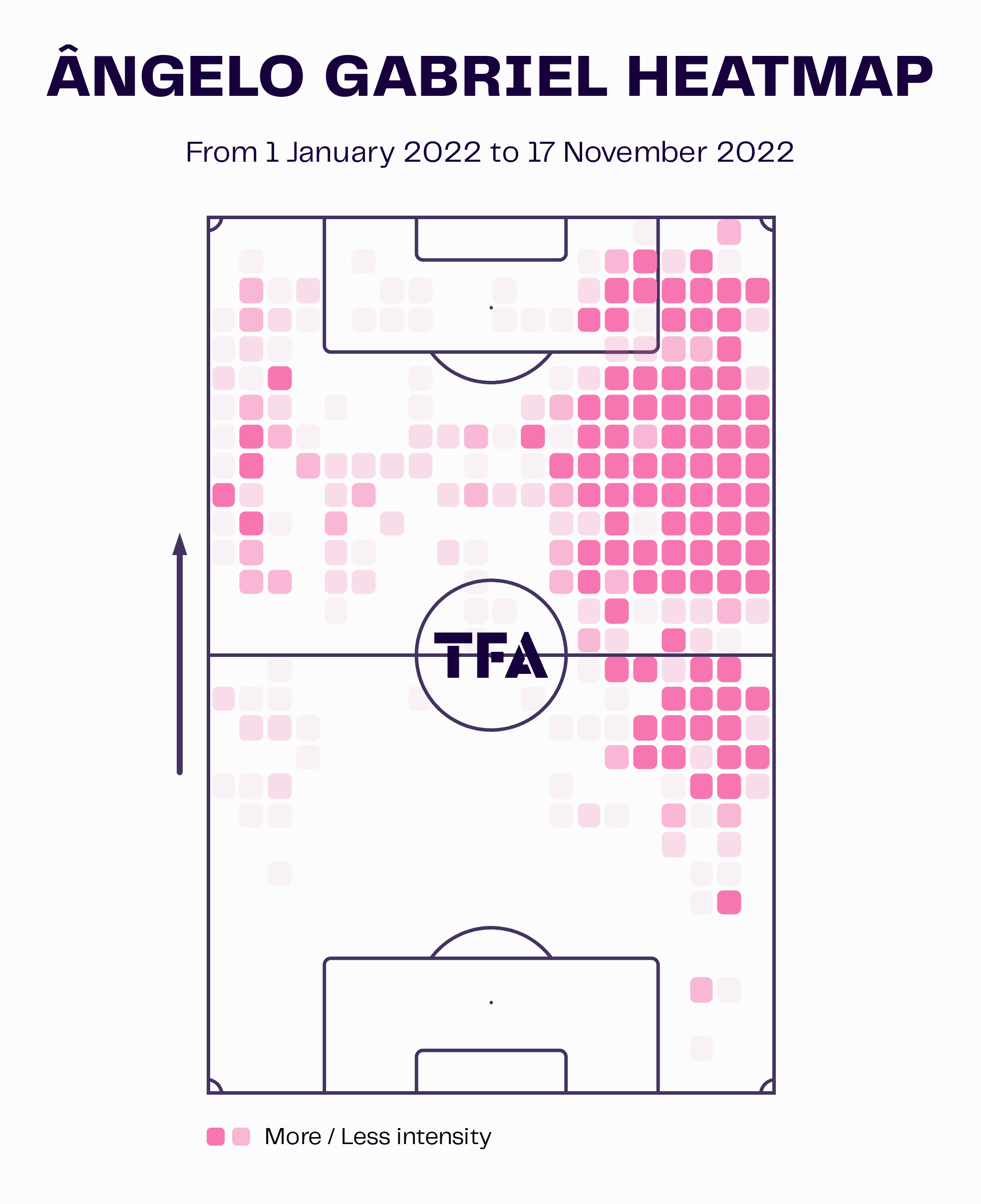 Ângelo’s heatmap in 2022 illustrates his positioning and movement this season.