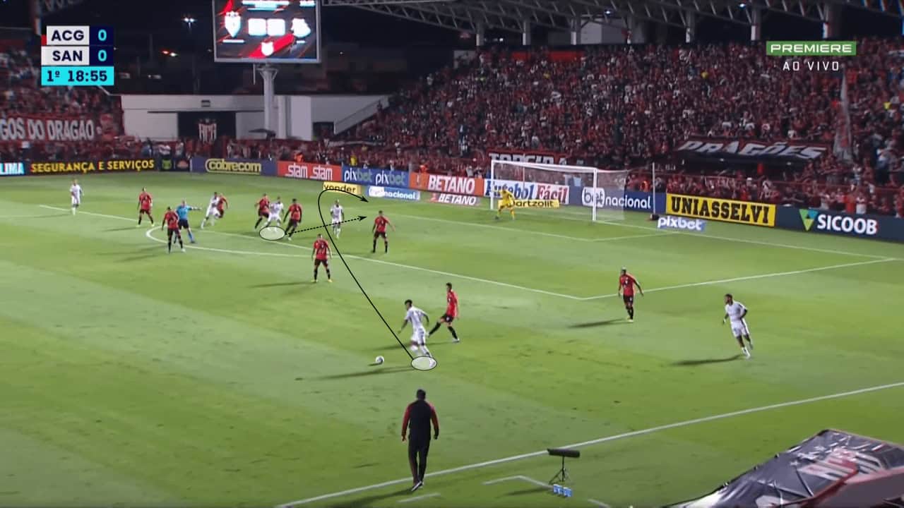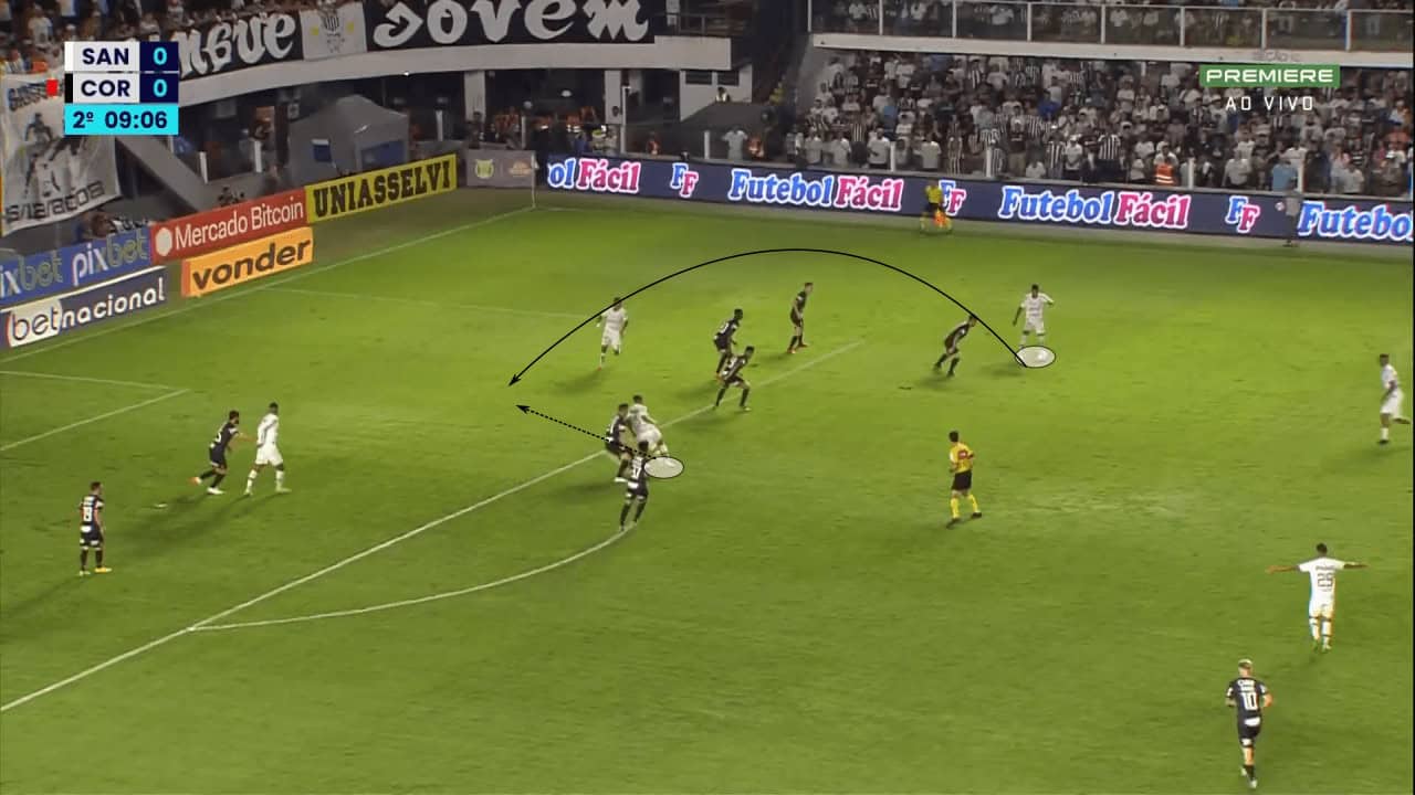 In another instance, now against Corinthians, the Santos star is able to perform a Neymar-like chip pass to put Marcos Leonardo in front of goal again.