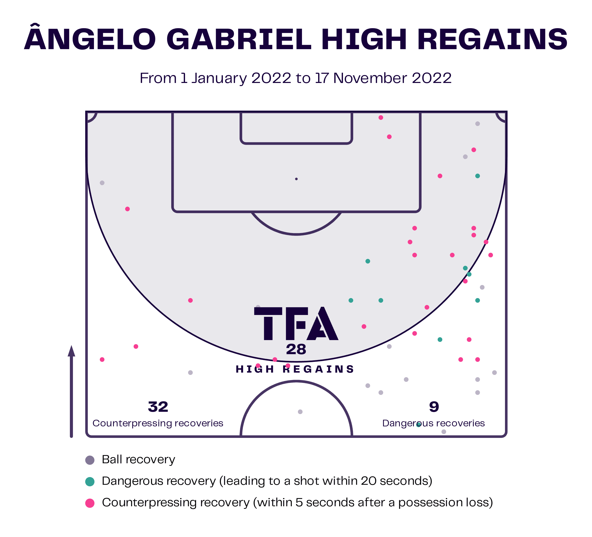 In 2022, the 17-year-old had 32 counter-pressing recoveries with an additional nine dangerous regains.