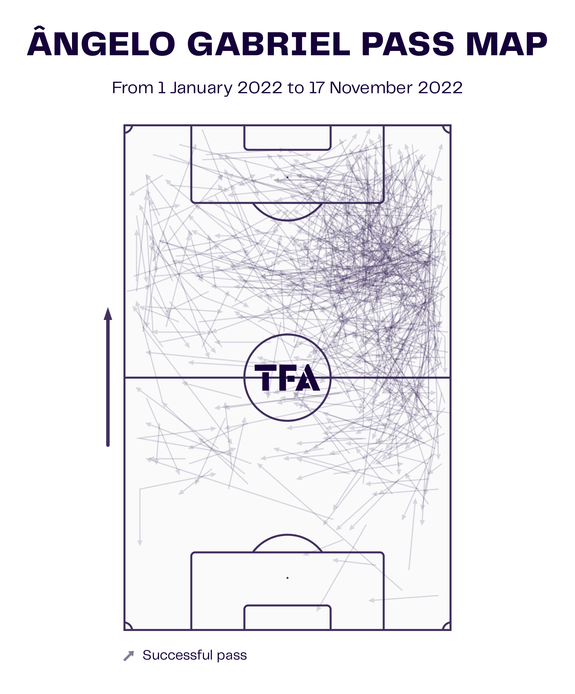 Ângelo’s ball progression map in 2022 further illustrates this.