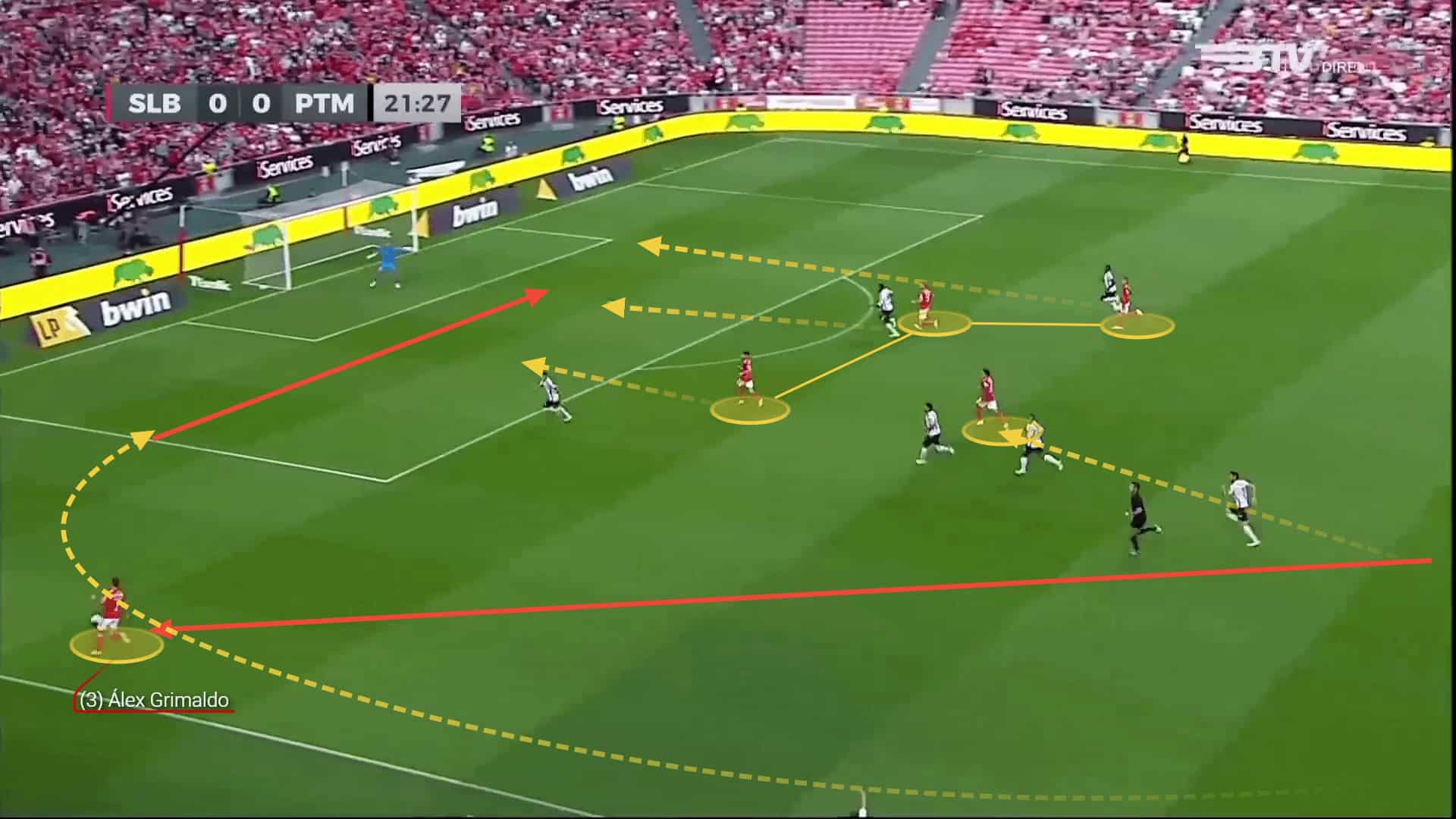 The left side of the pitch is well occupied by the wing-back Alejandro Grimaldo, the midfielder João Mário and the winger Darwin Núñez, who often combine in attack and increase the team’s creativity with their movement.