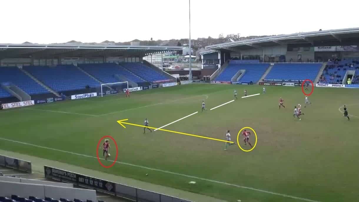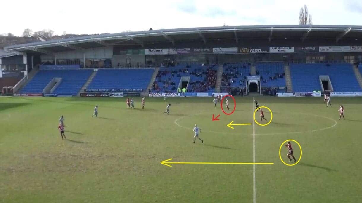 Another key aspect of Ward’s tactics at the club was the use of the wings, with her constantly asking her wide players to stay close to the sidelines and make the pitch as big as possible. By doing so, she wanted to stretch the opposition out, knowing that this would also contribute to gaps appearing in their lines that would allow her key threats, such as Jade Pennock and Maddy Cusack, to have space in which to work their magic.