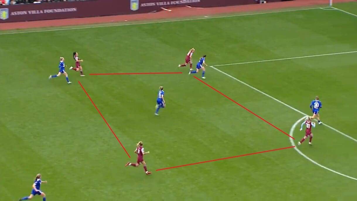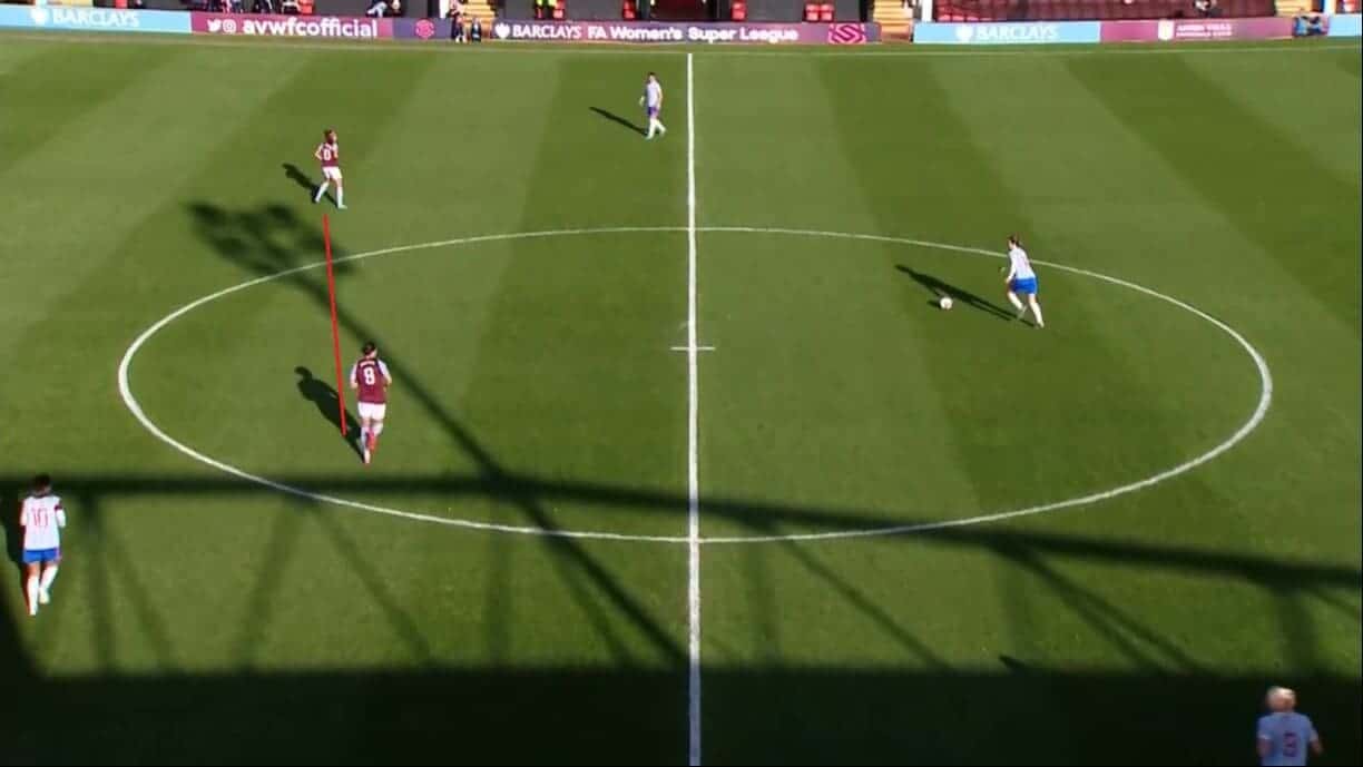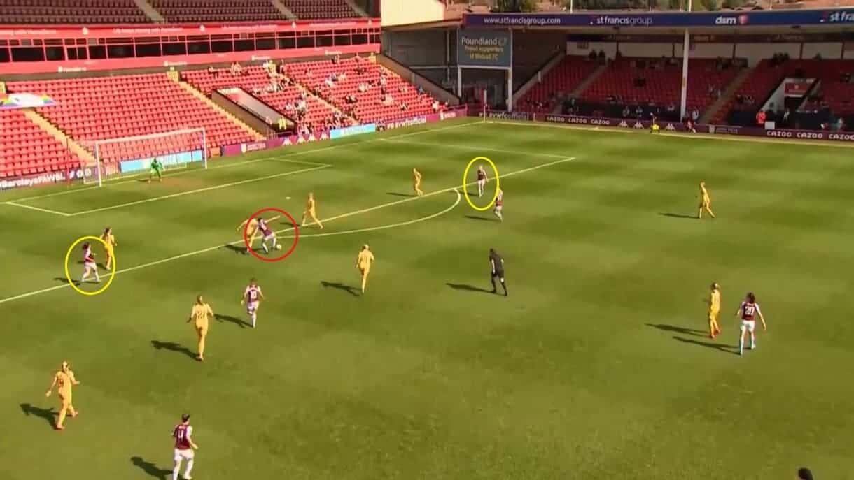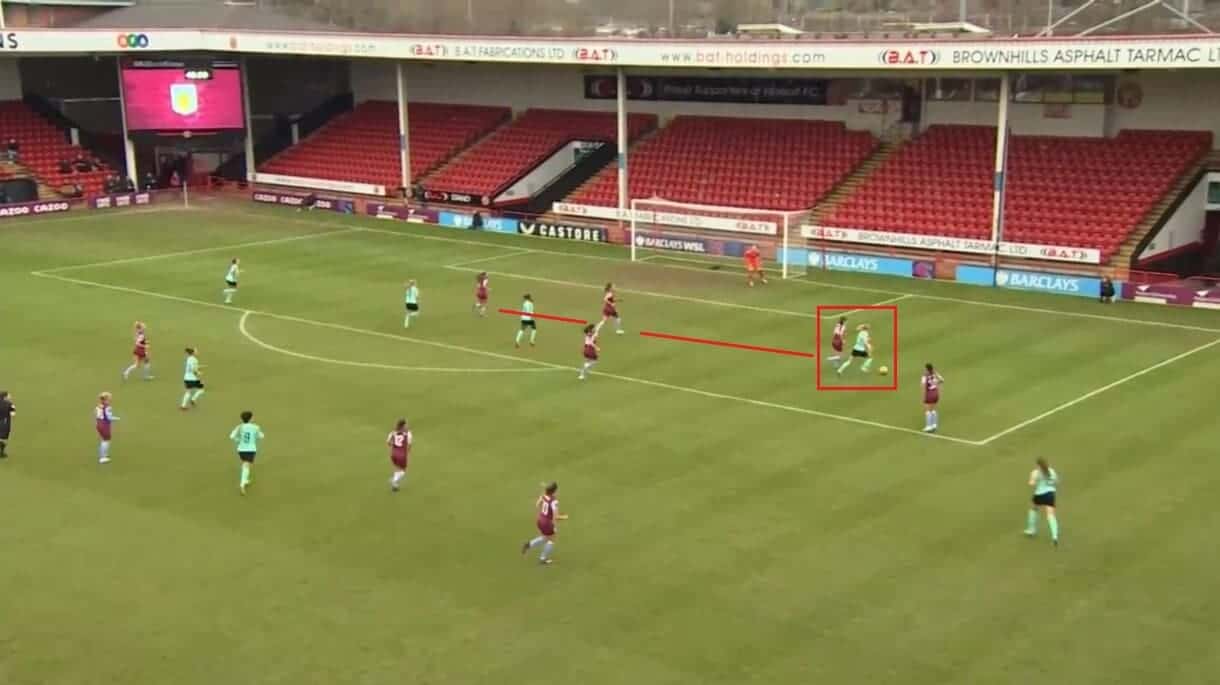 As a result, she is forced to move the ball into the middle, which is where Aston Villa can come forward and clear it, and the fact that they have done this on numerous occasions and on both sides of the pitch indicates how well-drilled they are and how Ward has ensured that, as was the case at both of her two previous clubs, each player knows their roles and the team works together to get results.