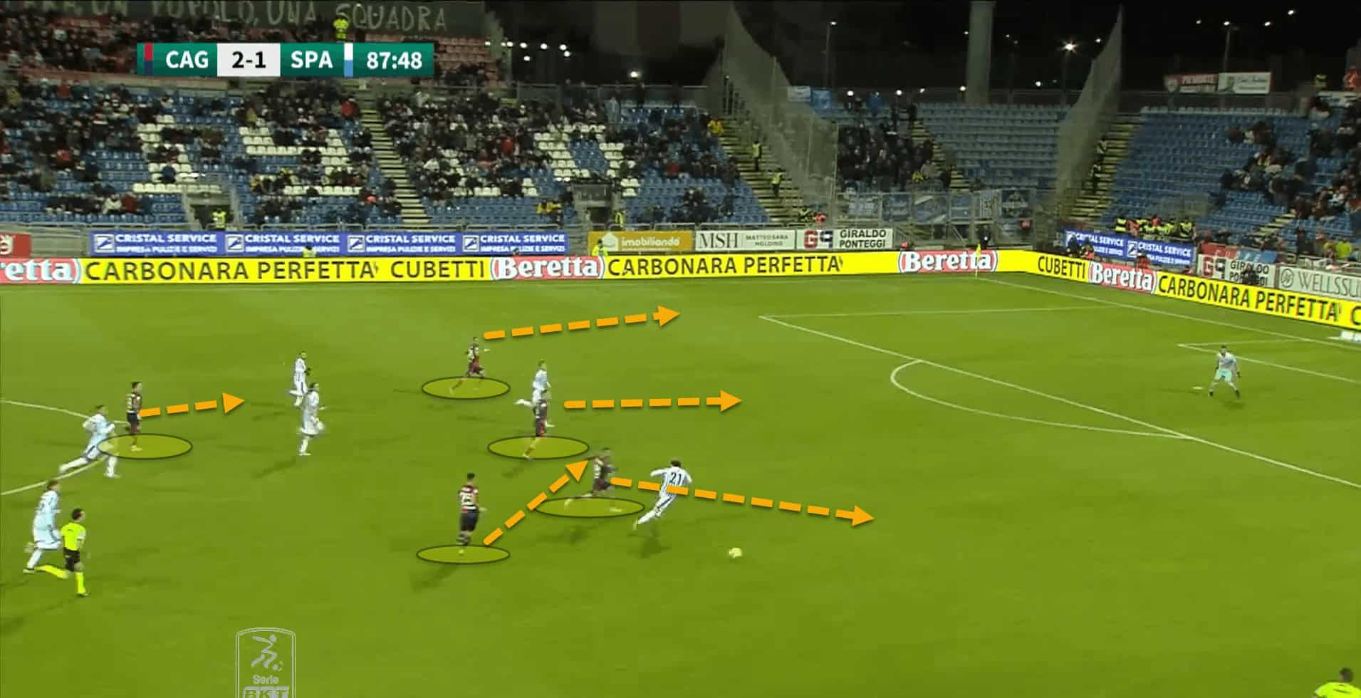 Here, Cagliari were pressing against SPAL’s 3-3 build-up shape.