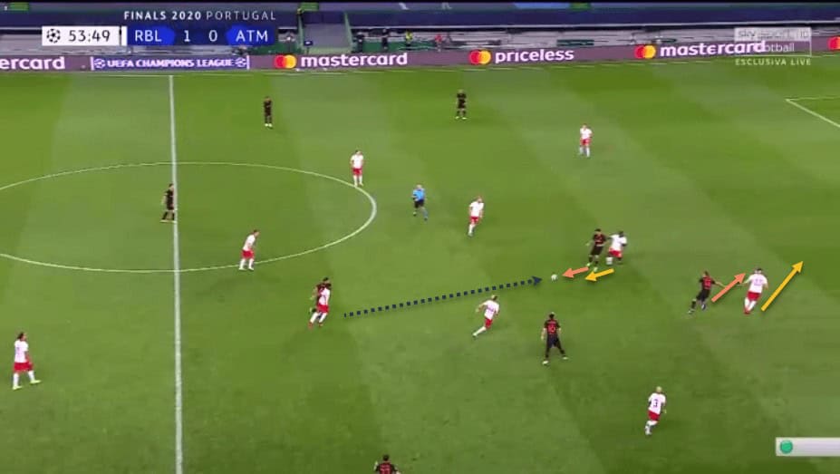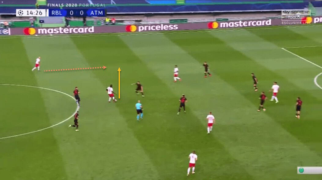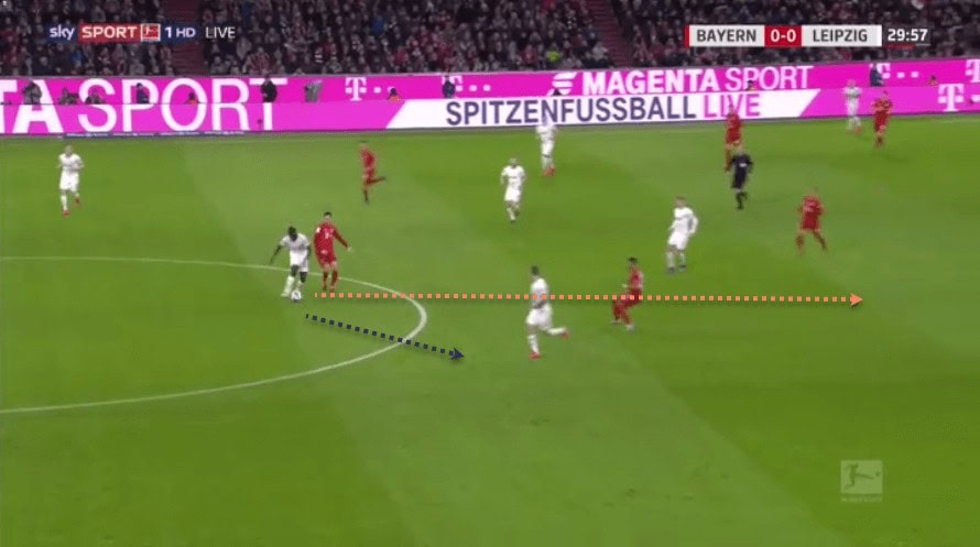 The next example is perhaps one of the best illustrations of Upamecano’s ability to drive forward with the ball –