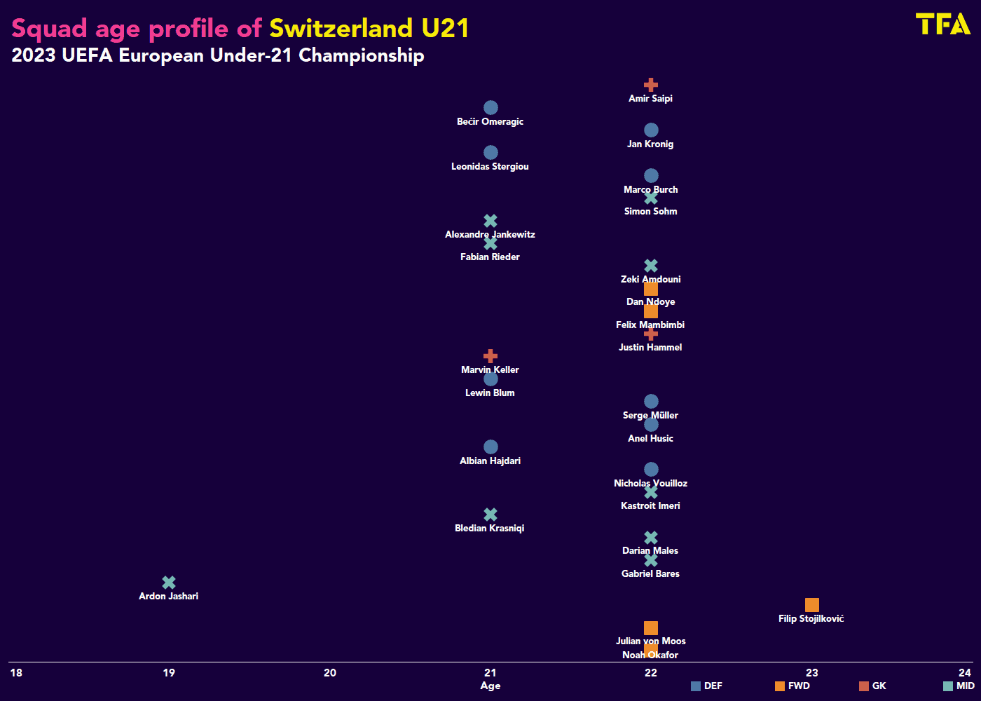 In terms of age, there is just about as much experience as you can at U21, with just one expected player under the age of 20: Ardon Jashari. Stojilković is likely to be the only player aged 23, with a good chunk of the expected squad to be aged 22. The fact that the Swiss were able to have consistency in terms of the general squad, but also rotation in the starting 11 could bode well for them, but only if they can find their form under a new manager.