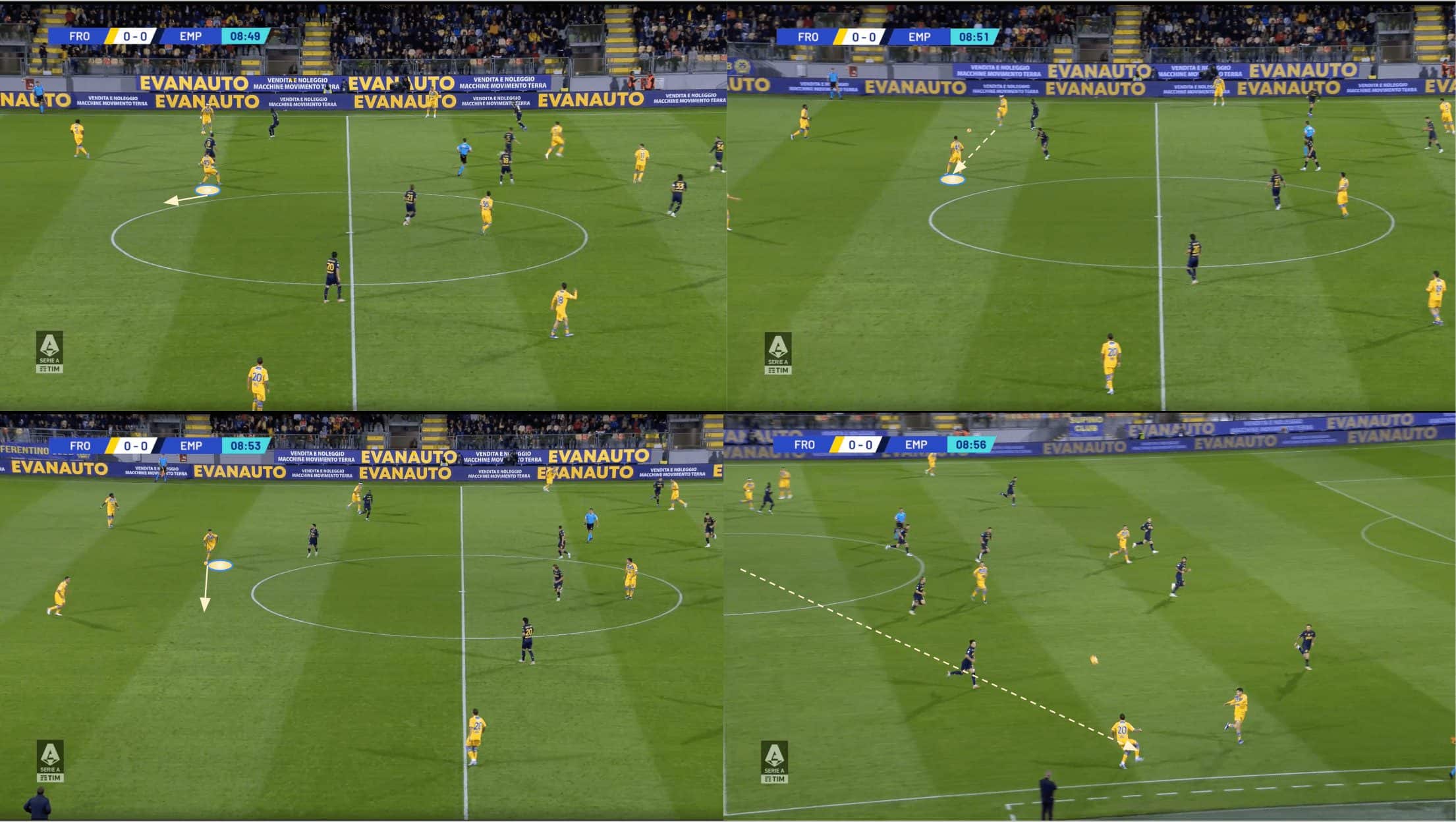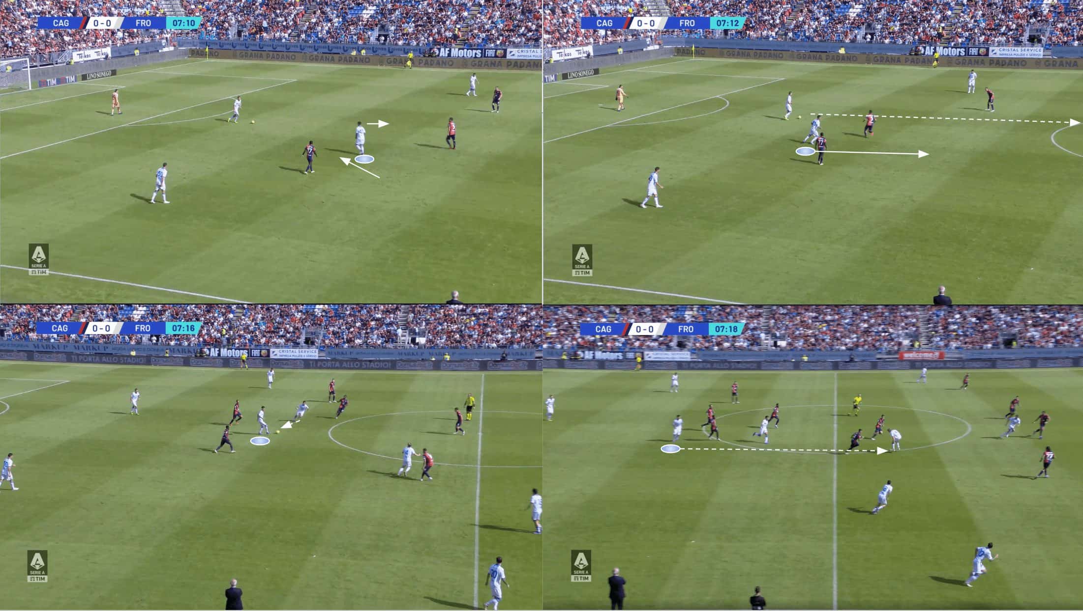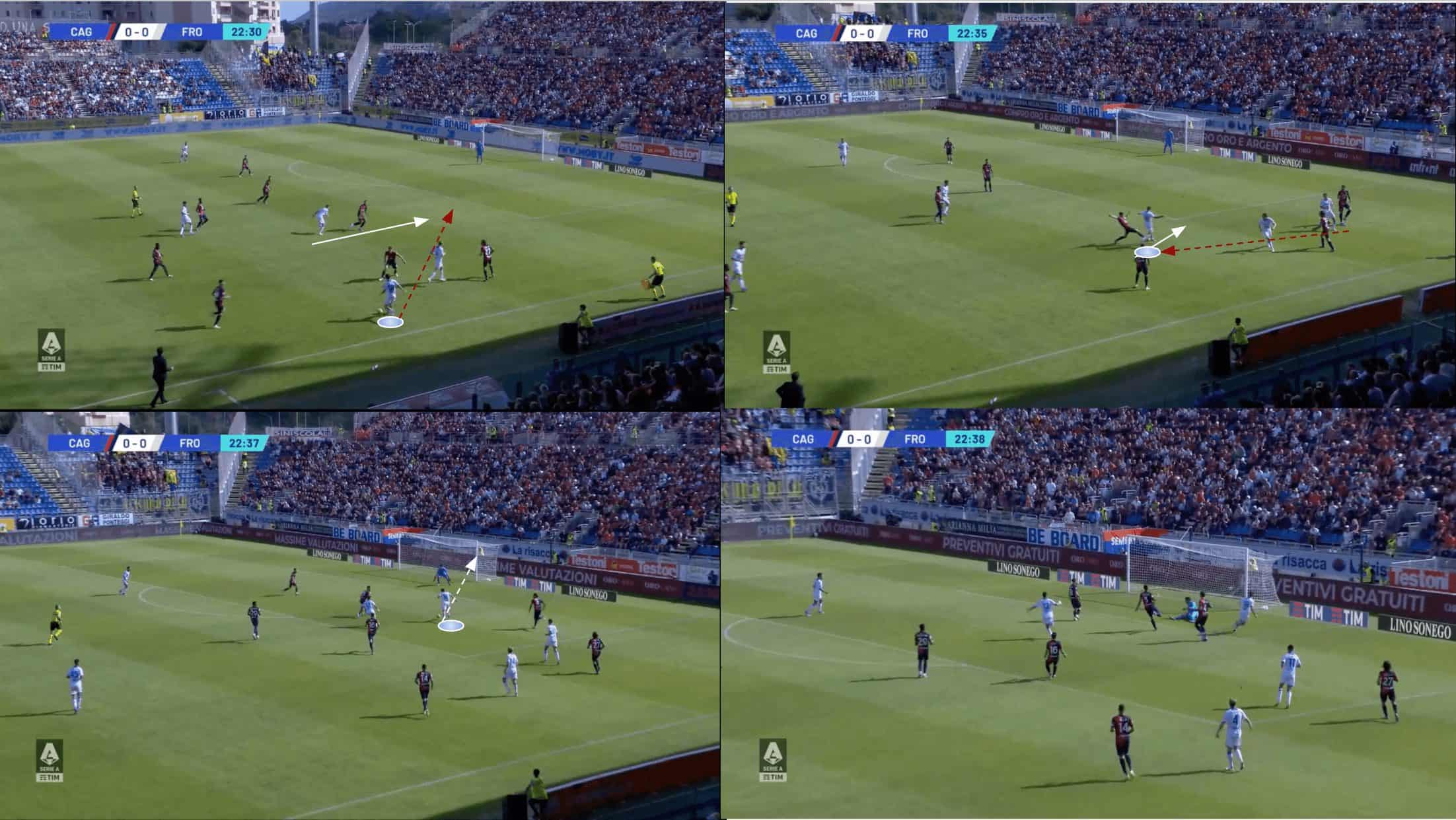 This is a typical example of how off-the-ball movement in central areas plays a vital role for Frosinone in the ball progression phase.