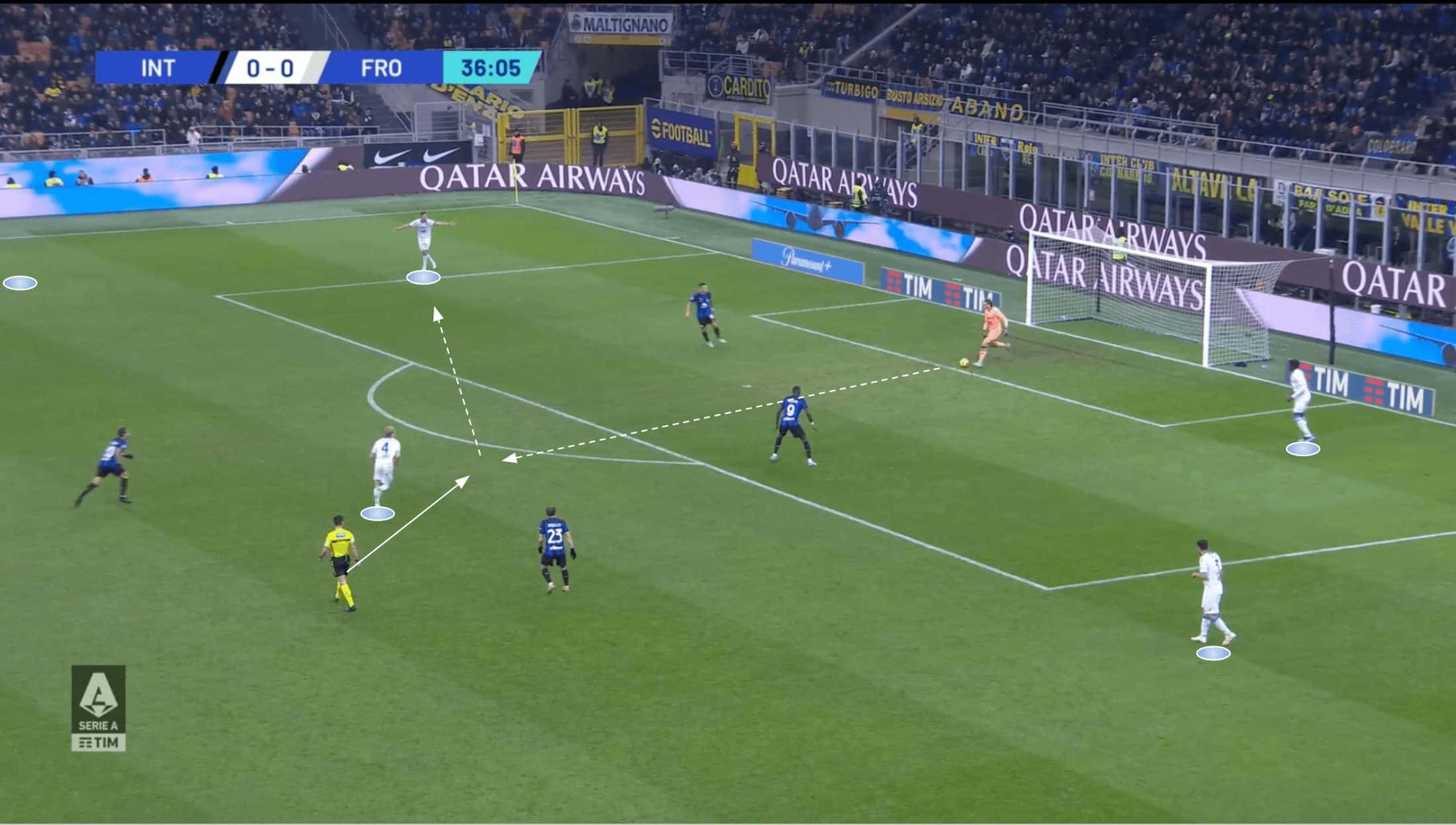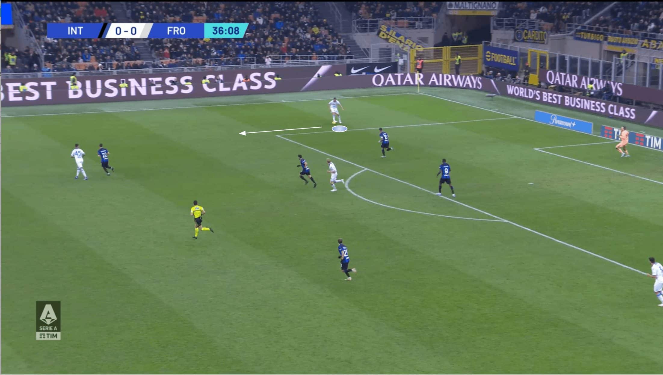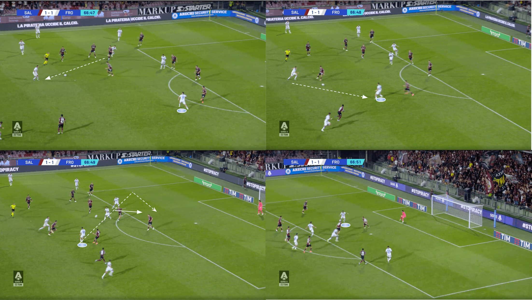 This is a typical example of how off-the-ball movement in central areas plays a vital role for Frosinone in the ball progression phase.