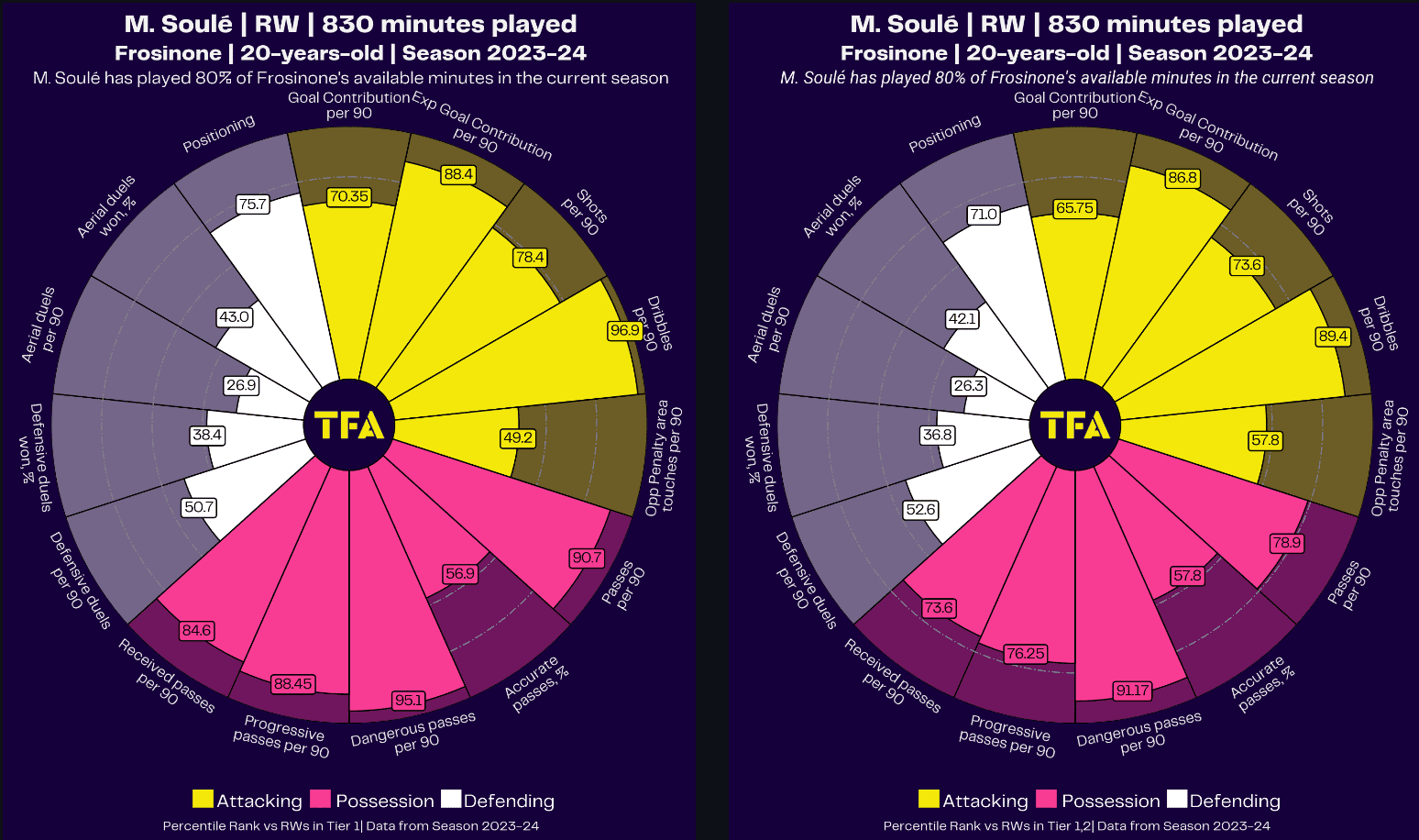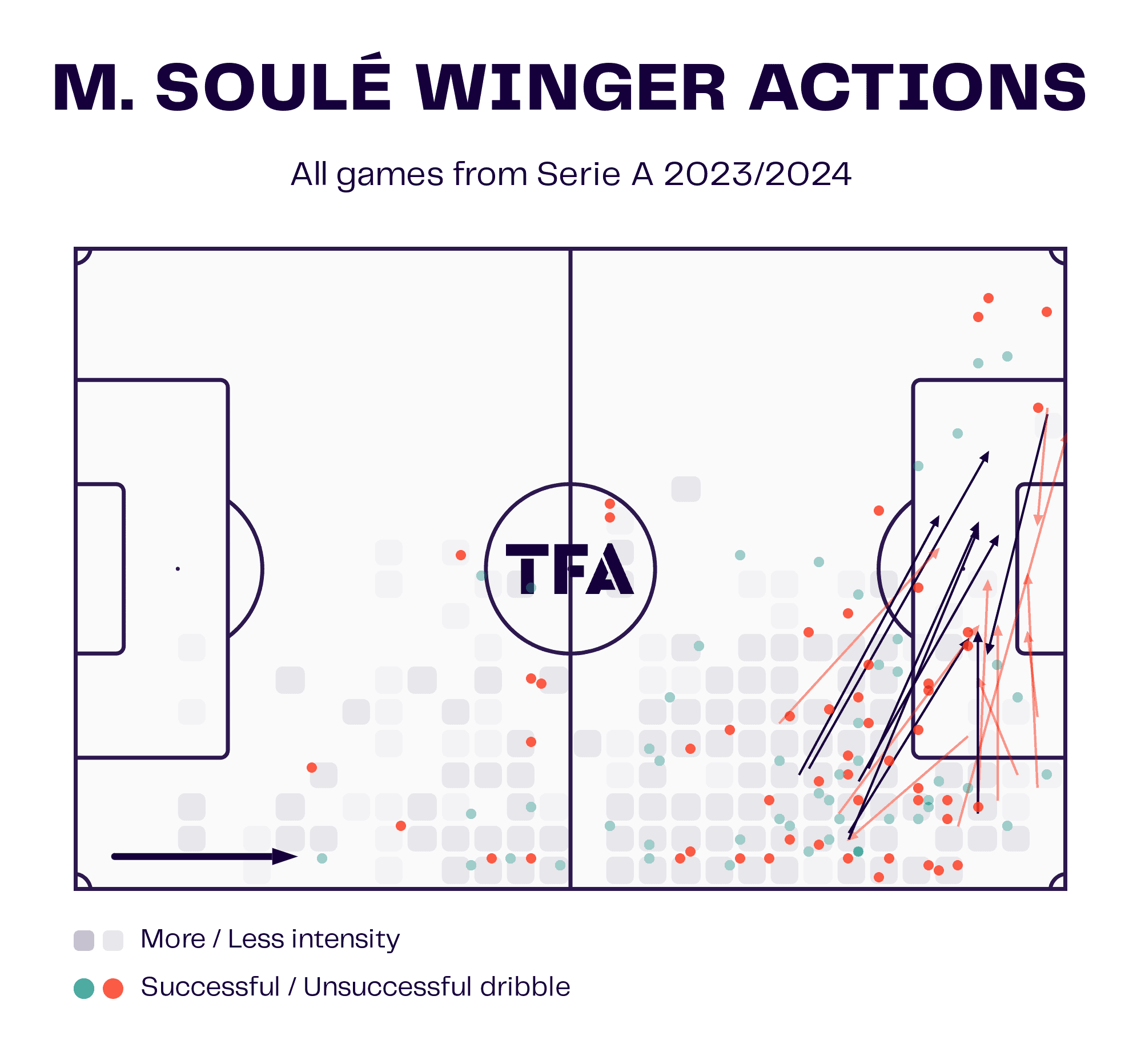 Few players have created more than Soulé from these positions this term, demonstrating how Di Francesco has found a way to extract the absolute best out of this young playmaker within his system this term.