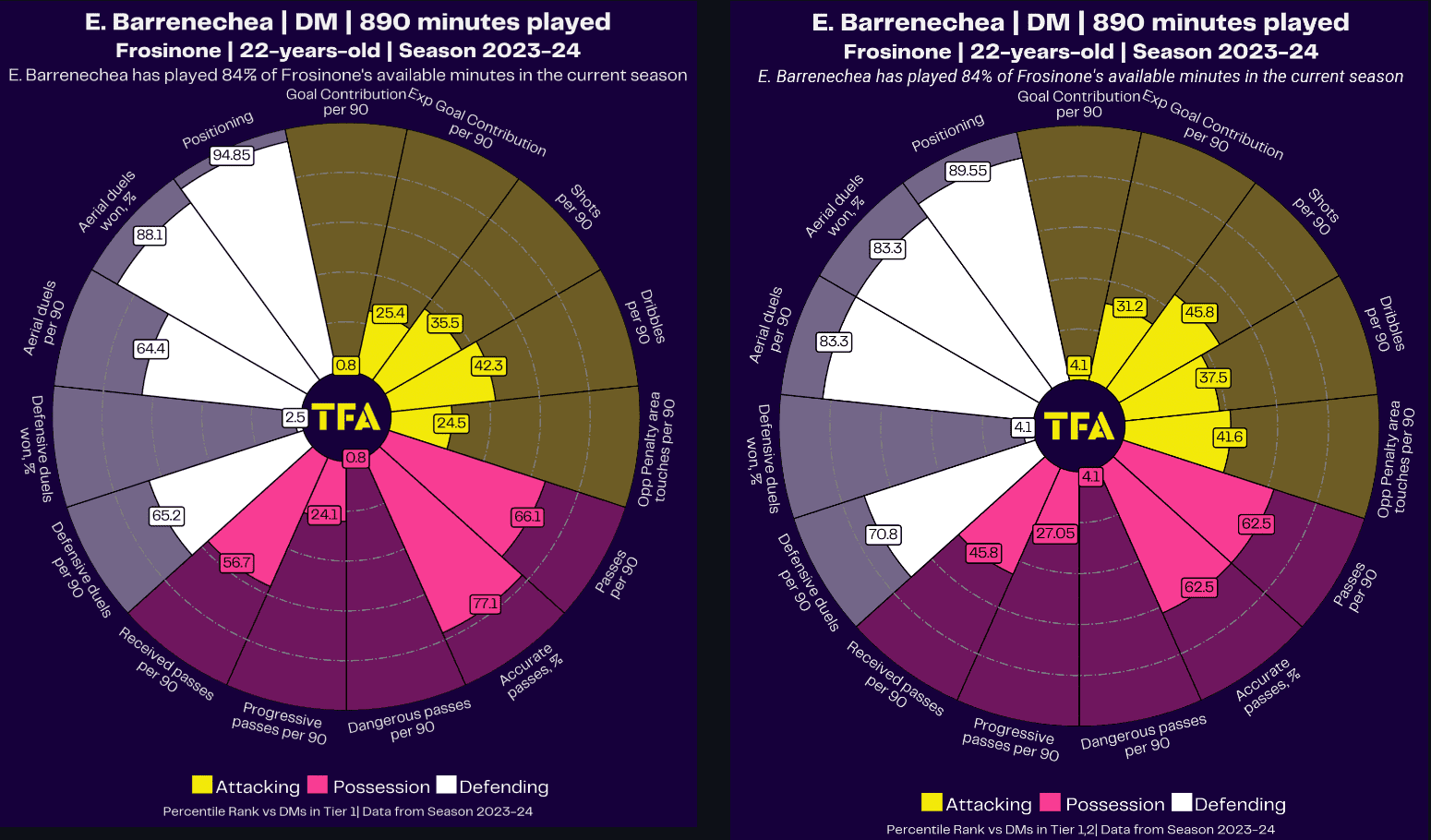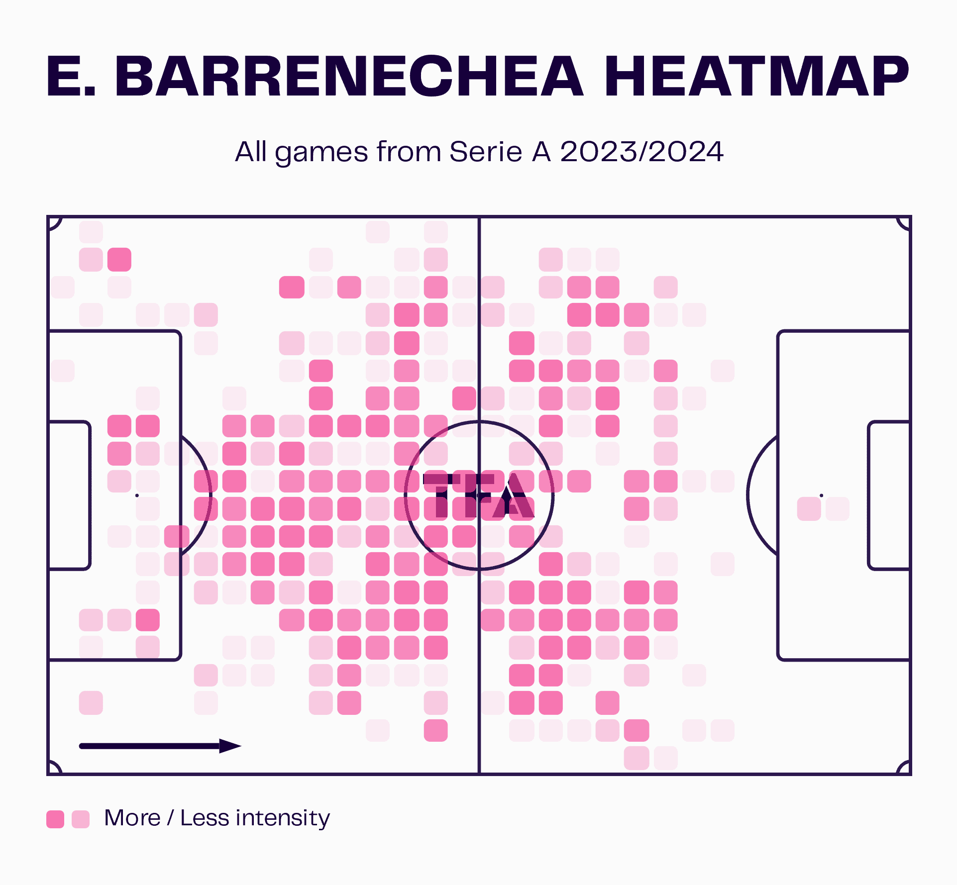 Out of possession, Barrenechea has been one of Italy’s most effective holding midfielders in terms of tackles and interceptions this term.