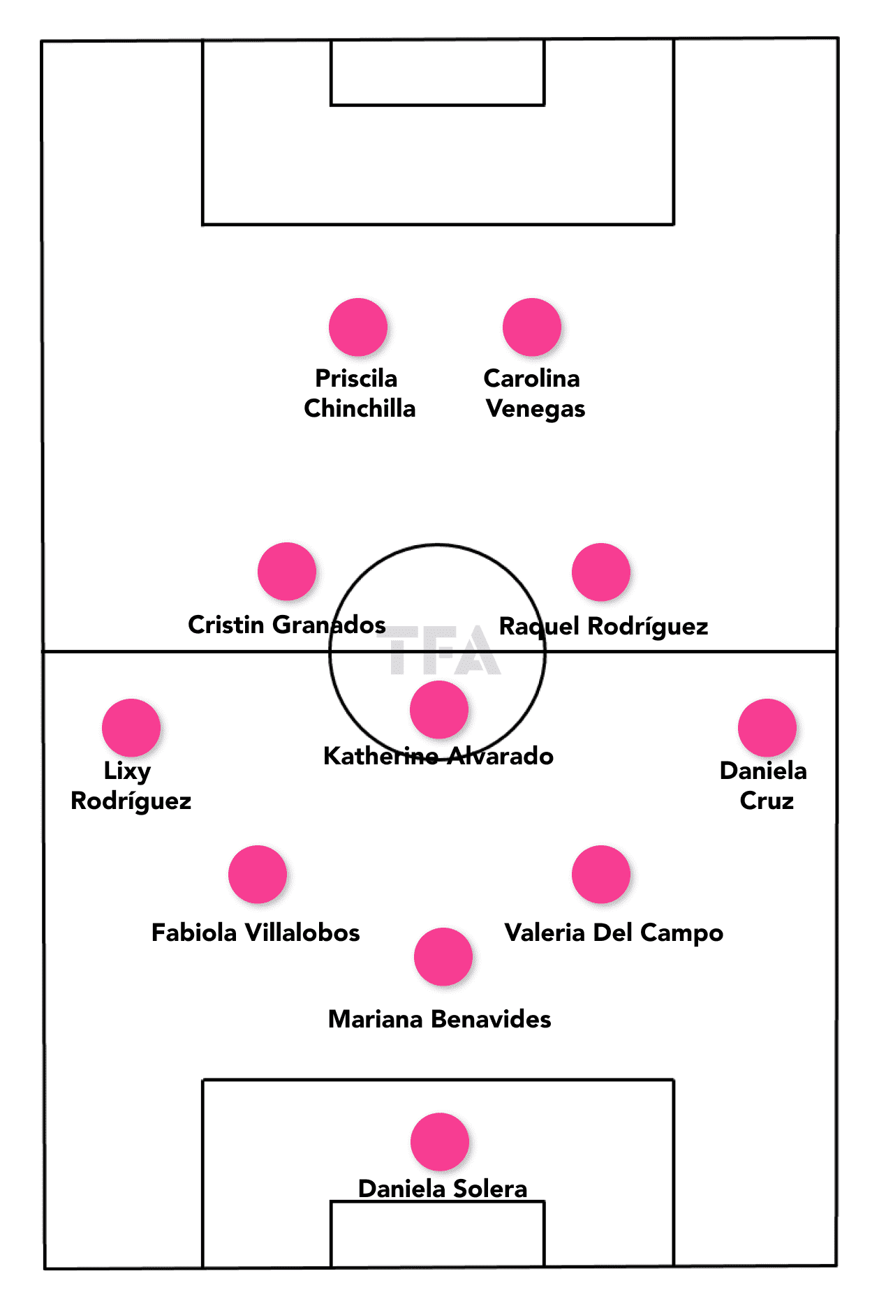 The front two possibly will be Carolina Venegas as the more advanced option and as a centre forward one of the most exciting promises of Costa Rica women’s football: Priscila Chinchilla