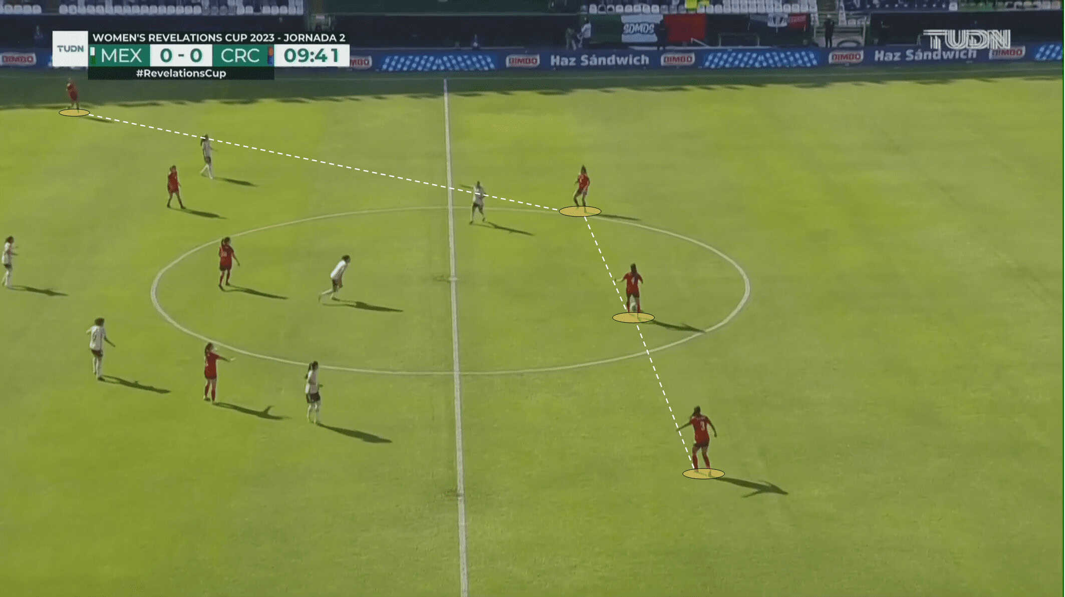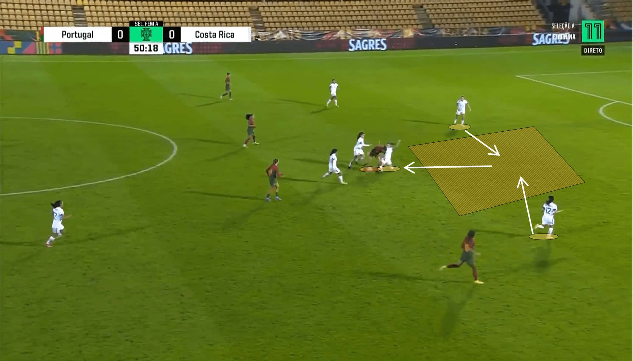For instance, the following image shows how Las Ticas are prepared for an eventual counterattack, with five Costa Ricans against four attackers.