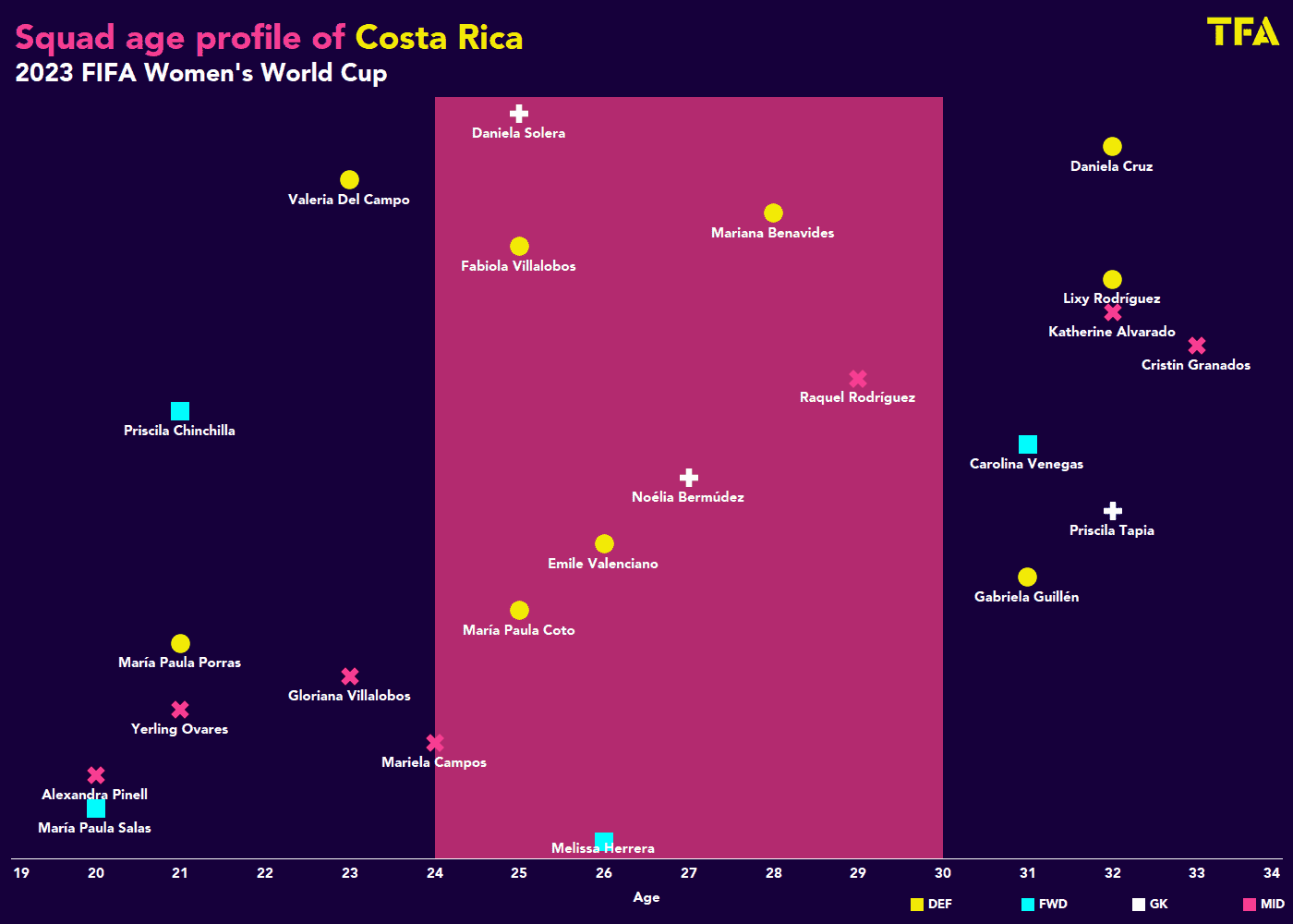 The Costa Ricans have a difficult but not impossible job in Group C with a former World Cup winner in Japan, an emerging national team in Spain who have just lost one game in eleven and a debutant in Zambia. Throughout the year Costa Rica has been increasing their roster’s quality and at the moment they have players performing in the top European leagues like the women’s version of La Liga, Ligue 1 or even UEFA Champions League.