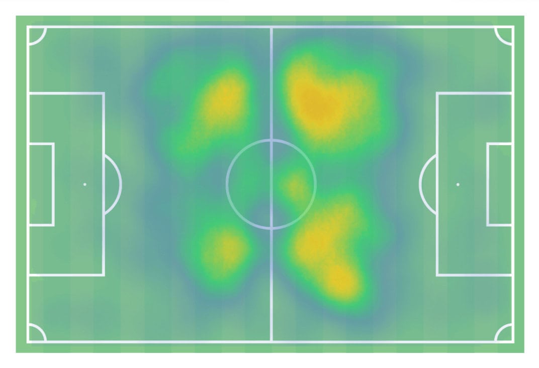 His defensive numbers are also impressive, especially given how good he is in possession. With 11.82 successful defensive actions per 90 and 9.92 defensive duels per 90, he offers presence and success in defence. More impressively, though, he has 7.97 possession-adjusted interceptions. His ability to read the game and disrupt opposition play is exceptional. In a side that constantly presses high and intensively, he is also able to cover players and command the press from deeper.
