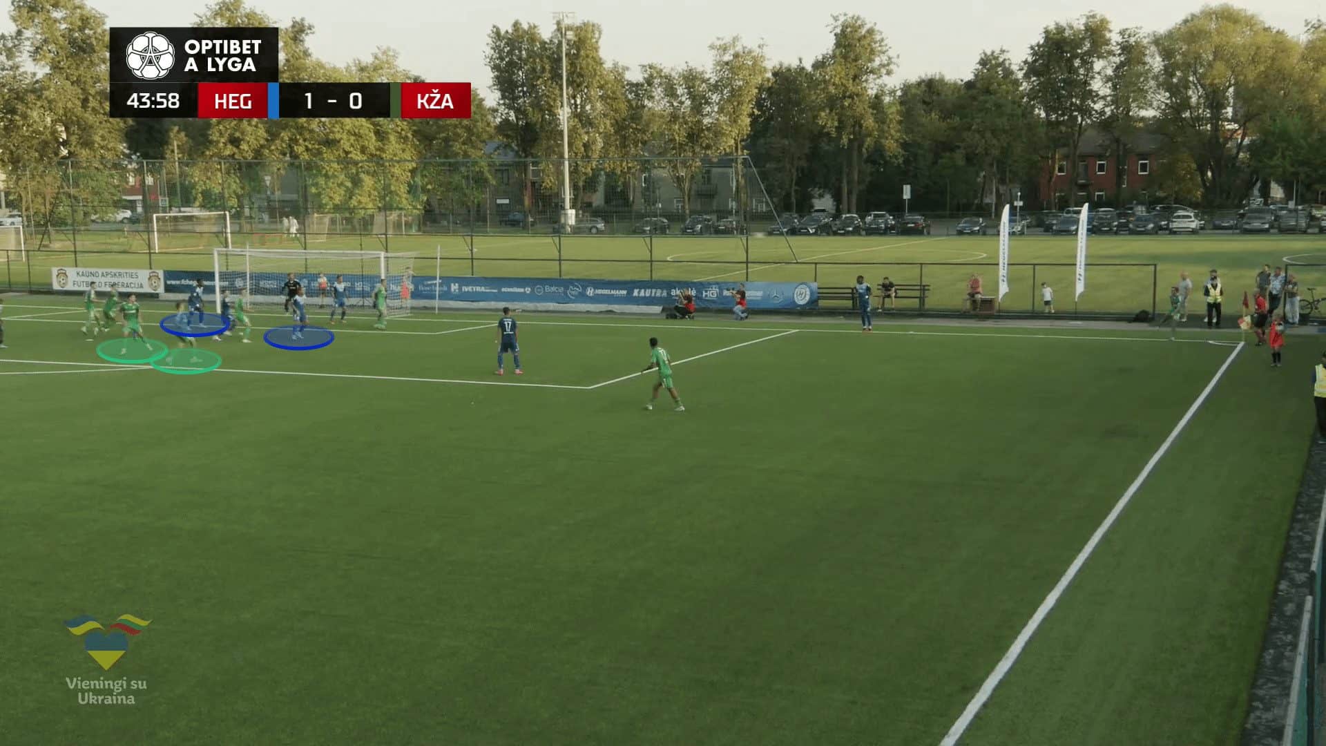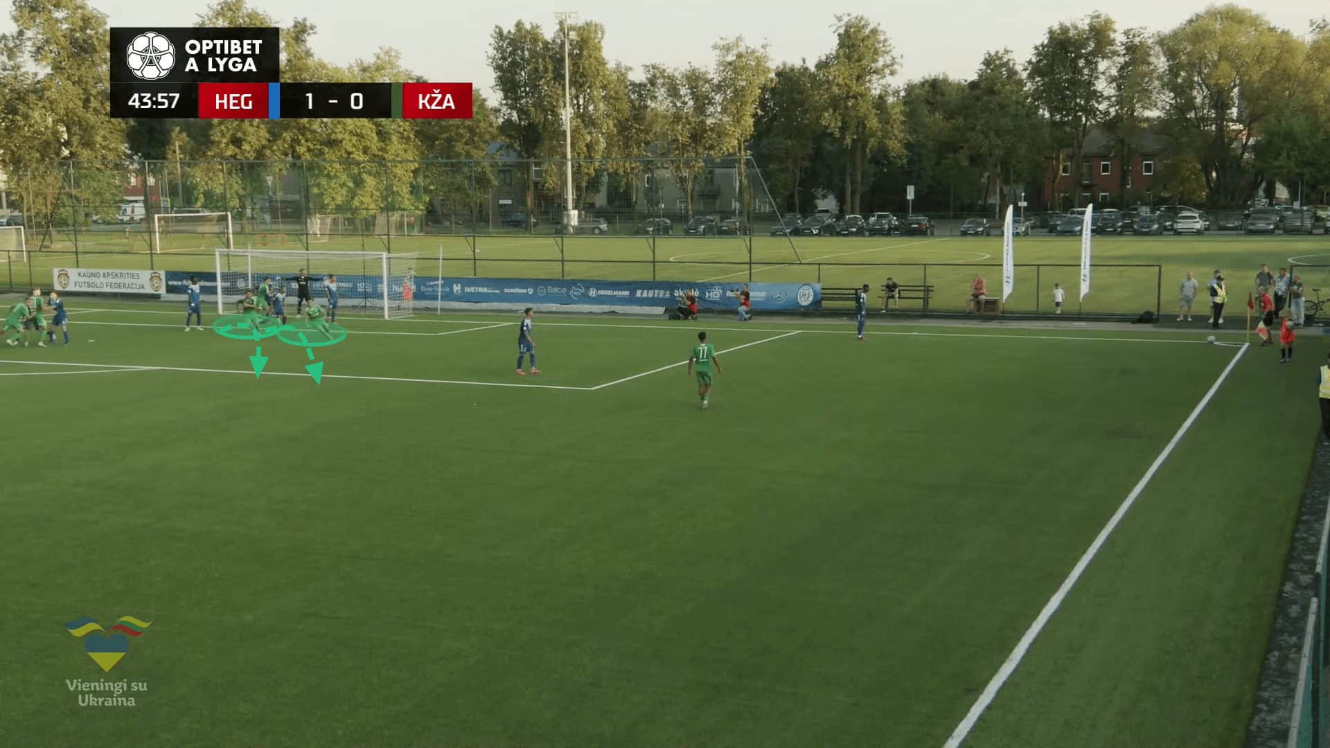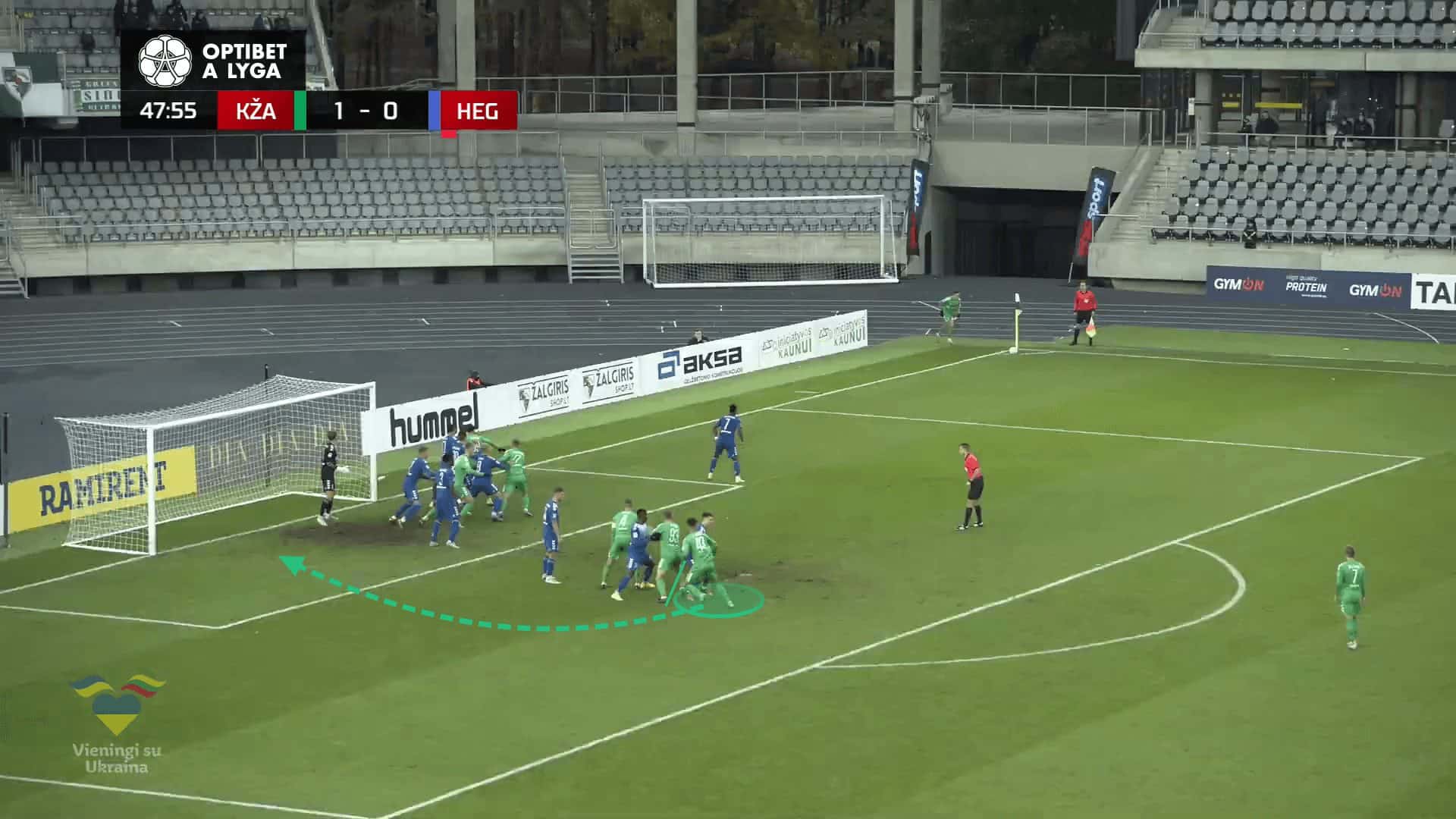 Another method used to ensure the corner kicks are as dangerous as possible is through sustaining pressure following corner kicks. As discussed in this article, there will always be a player making a decoy run, meaning that the nearest player to the ball, should it be under-hit, will always be a Kauno Žalgiris player.