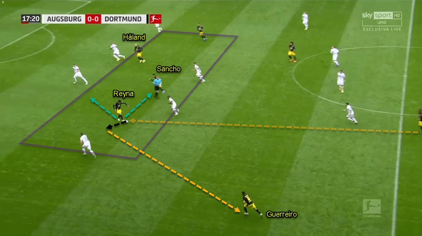 That means Reyna has an important role to set up the overlapping players in the flank so the receiver can send incisive crosses into the box.
