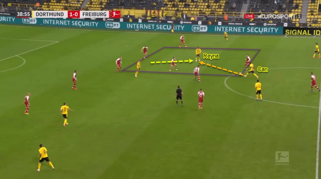 When he does so, he can help Dortmund to overload that particular area.
