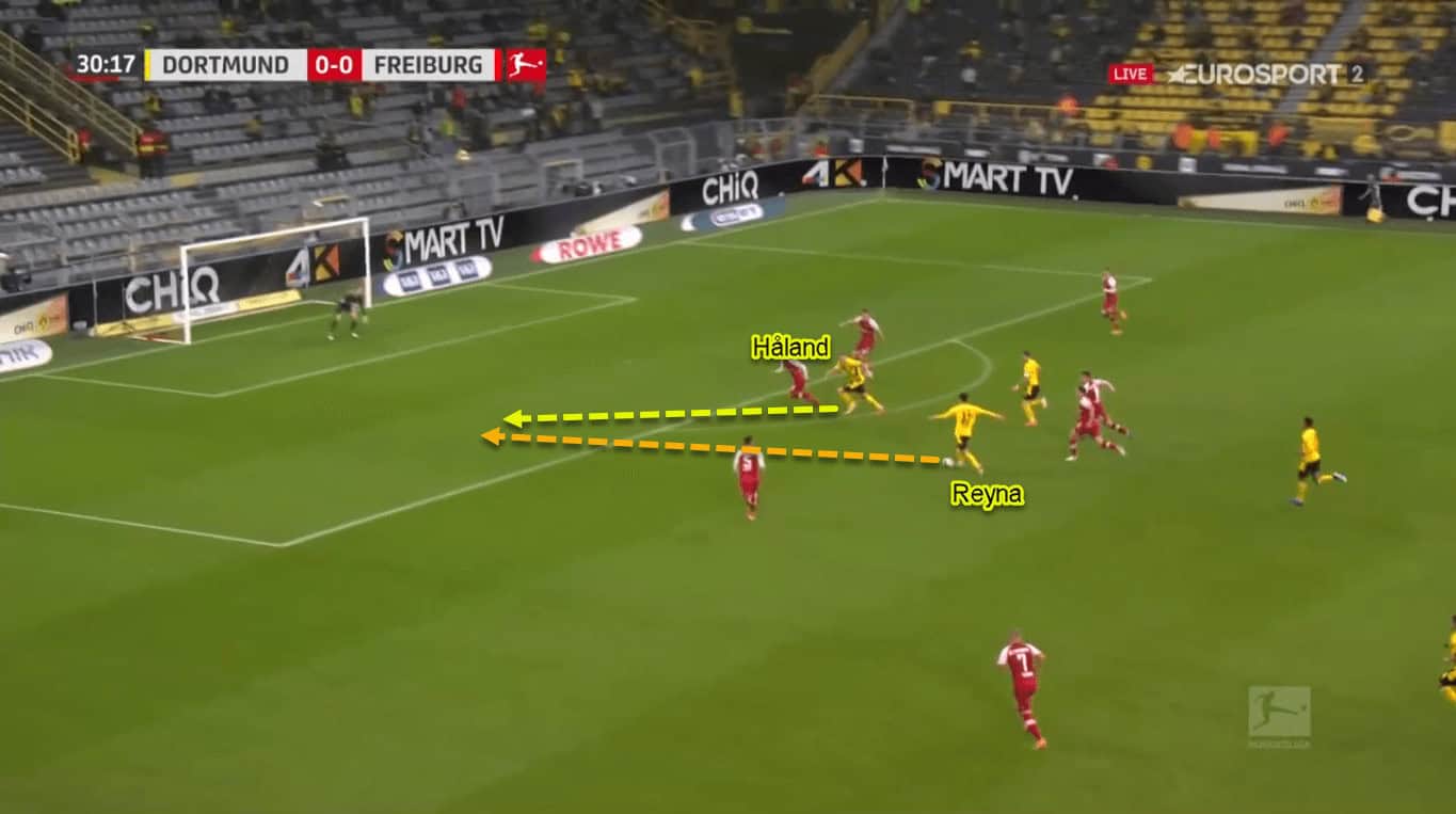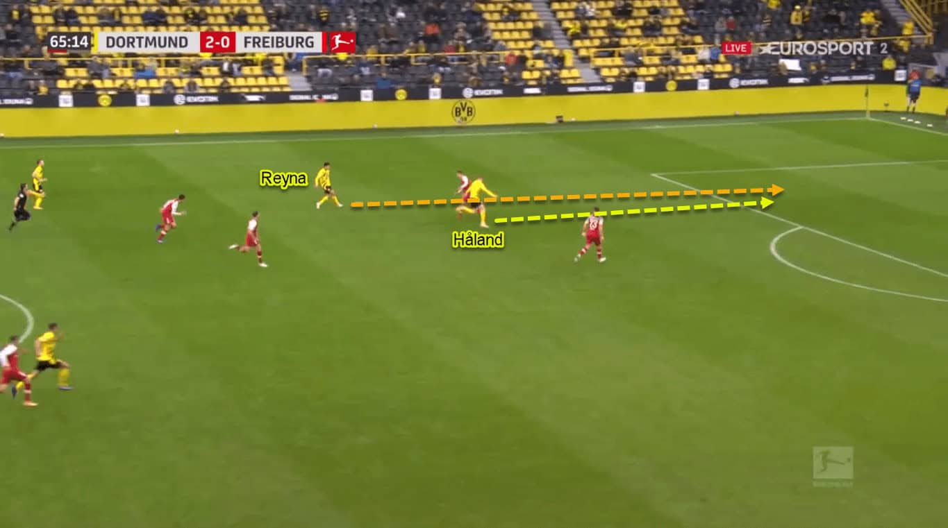 It means that Reyna is often able to find Håland from time to time with well-weighted through-balls into the box.