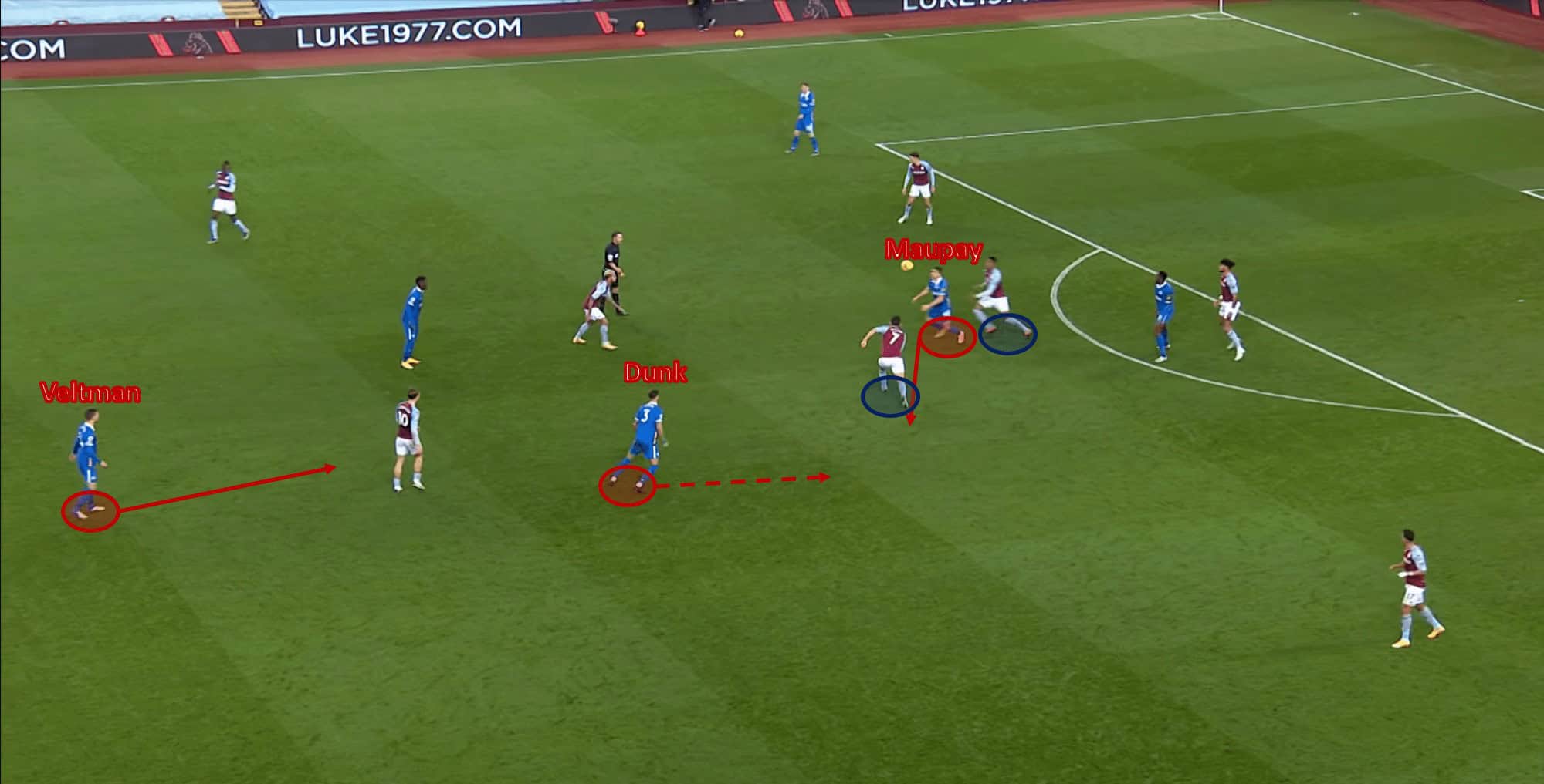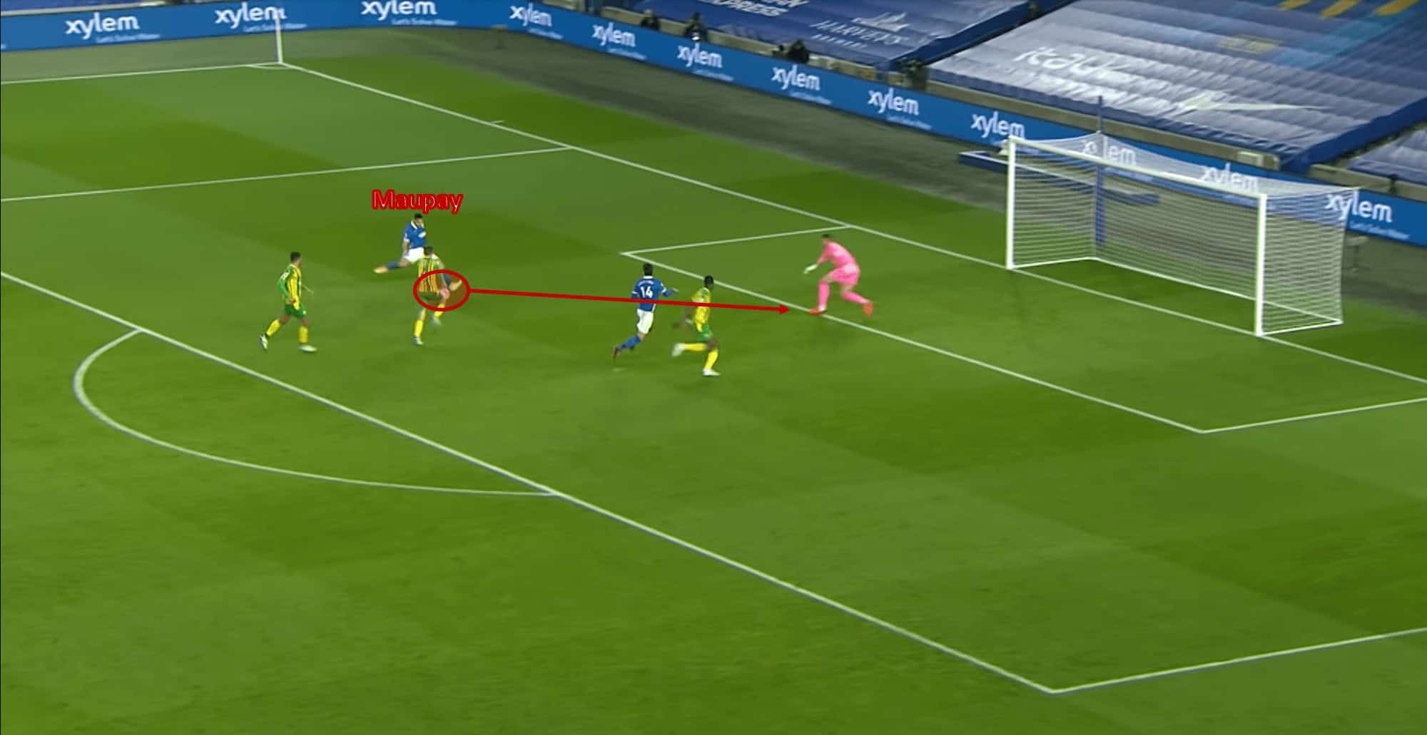 He can also slow down his run before he reaches the penalty area, aiming to find the run of one of Brighton’s attackers. Maupay’s blind-sided runs are perfect for this attacking approach, all it requires is a calm and composed first-time strike, which is sometimes harder than it looks.
