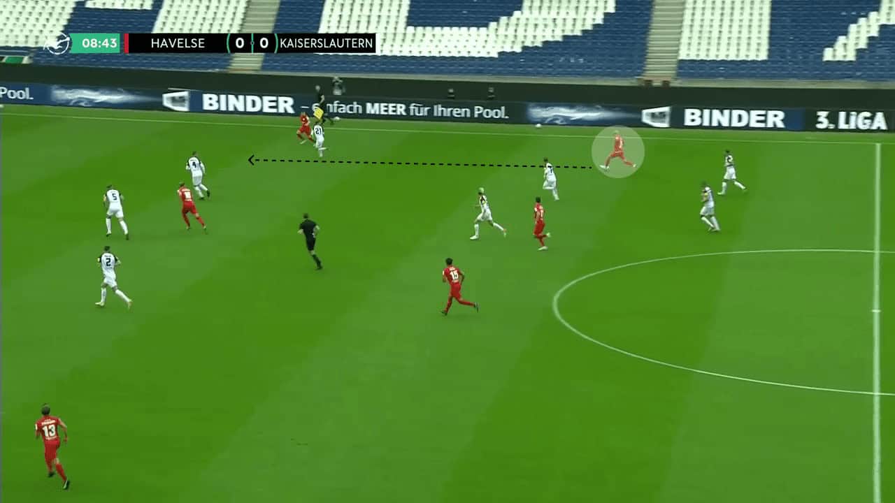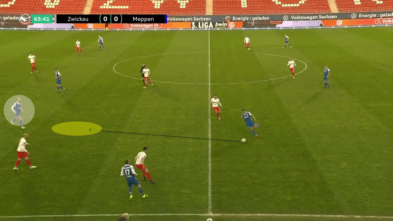 In the match image, Düker is bubbled in a white circle for easy representation and one can see that he’s dropping back into space to help in the build-up of the game. He has very good game-reading abilities which help him in making decisive decisions.