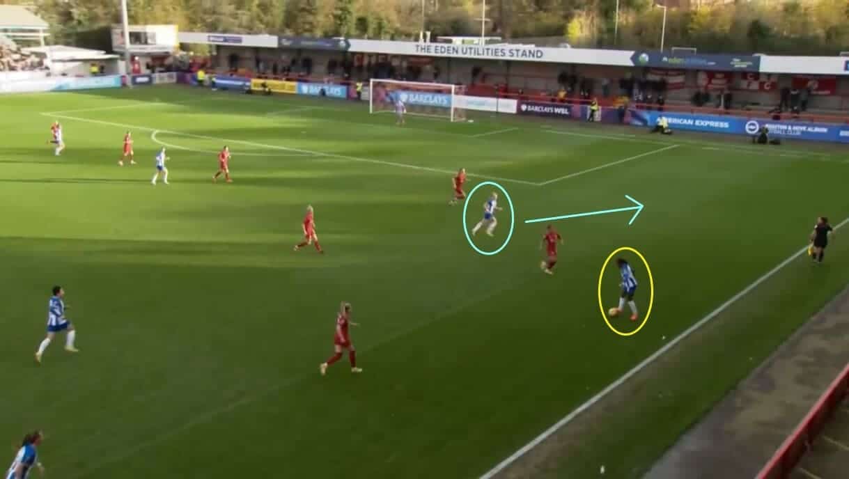 Whilst Terland is unable to convert the opportunity on this occasion, with her sending the ball narrowly wide, the fact that Brighton were able to have a go here was because of Robinson’s speed to get up the field and then her awareness to pick out the Norwegian, and that is one reason that she has been so central to her team’s attacking play this season.