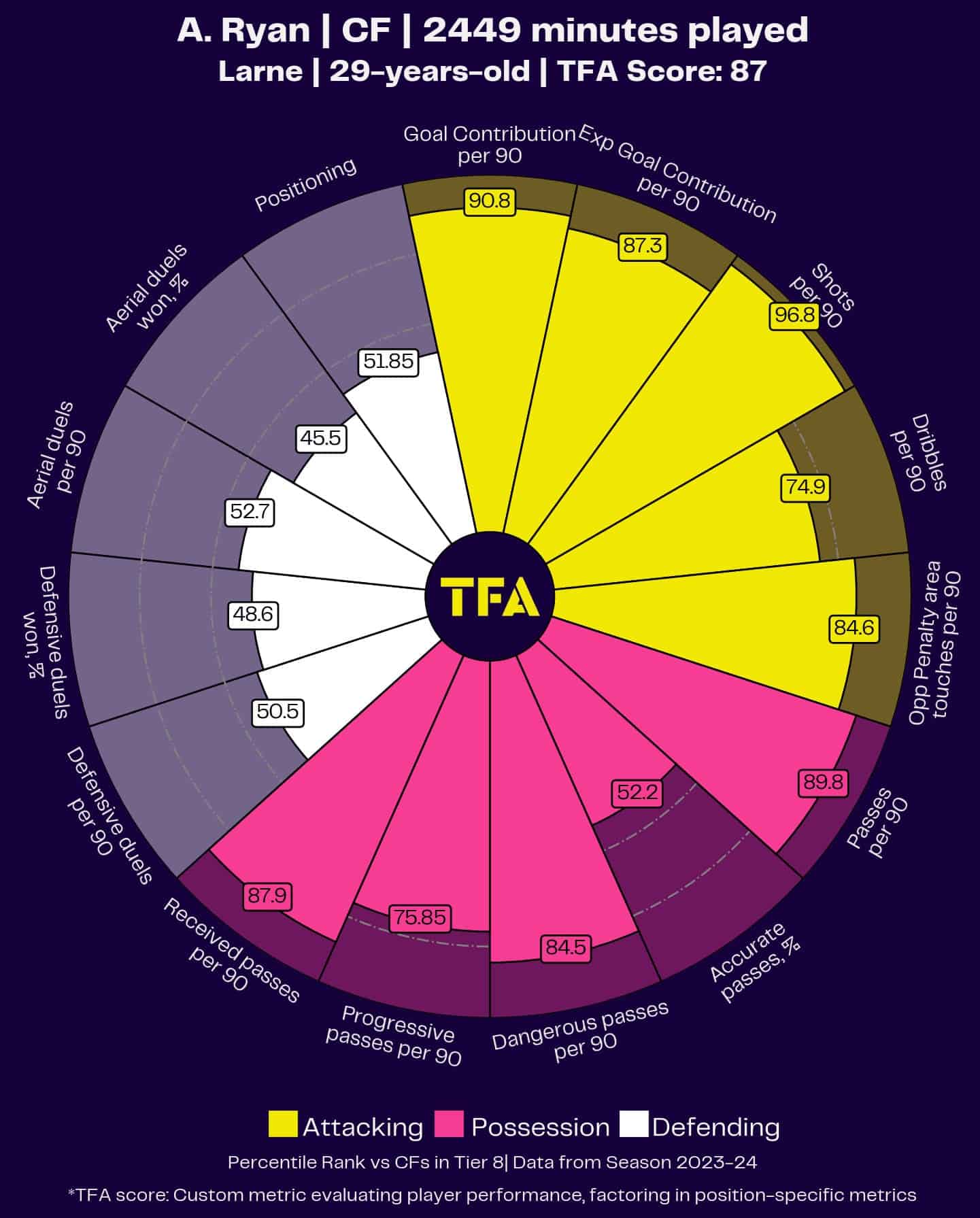 Over the past season, Ryan has become the league’s most potent striker.
