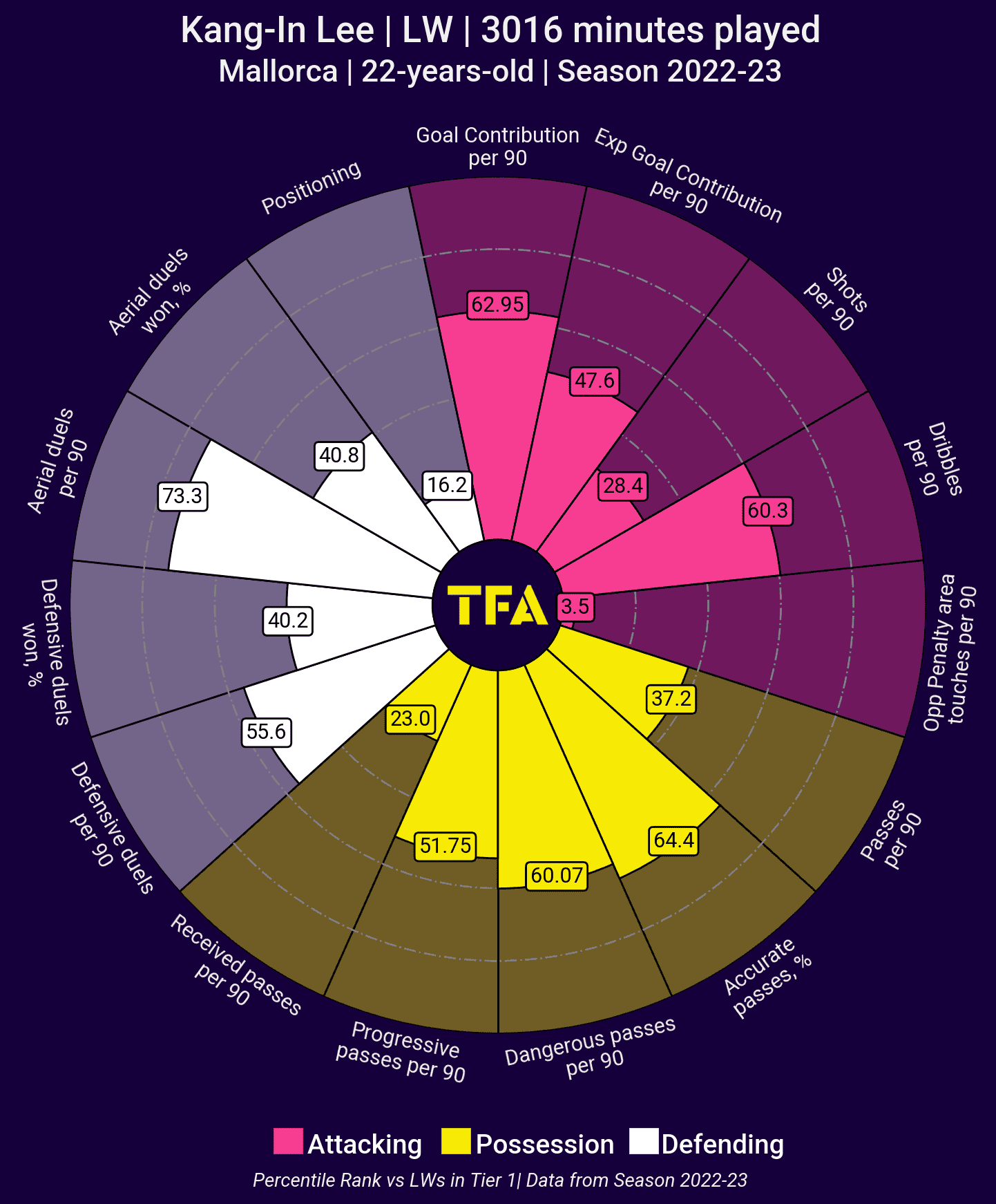 Ranked 60th percentile among left-wingers in Europe’s big five leagues is not bad for a 22-year-old, especially playing in a side that does not have a lot of the ball.