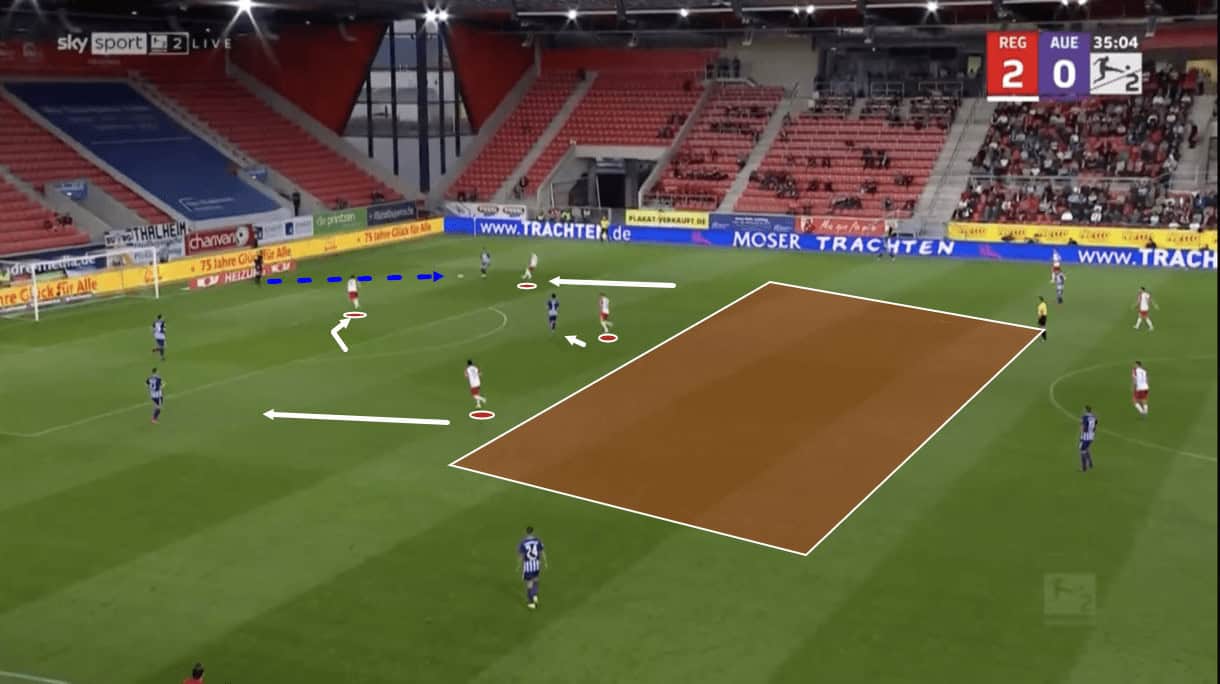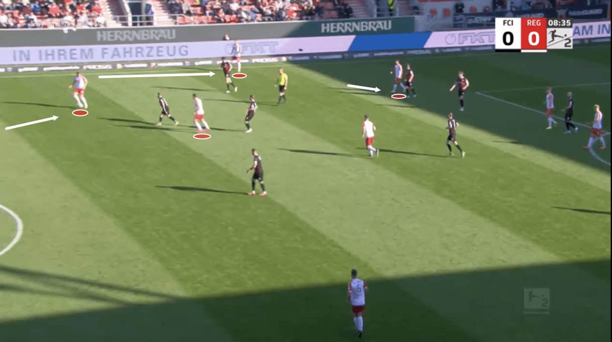 This shape and these tactics, as well as the players’ application of them, can create some issues for Jahn Regensburg in terms of progression.