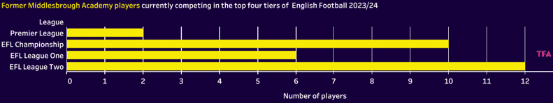 The bar chart shows that despite not being a Premier League side, Boro has produced talent who are currently playing at the highest level.