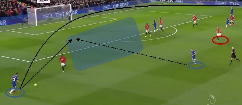 Matić is a bit slow in pace and immobile, though he can atone for it with his positioning. He needs time to accelerate and decelerate opponents could exploit this by utilising quick combinations around him. Also, the midfield is usually only covered by the two defensive midfielders. That means they need to have horizontal coverage in the midfield area. Therefore, the opponent can use switching play to catch the moment when Matić does not get back in his position on time and make use of that time and opening.