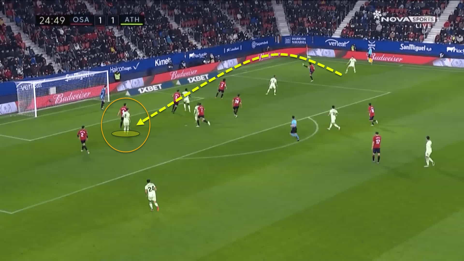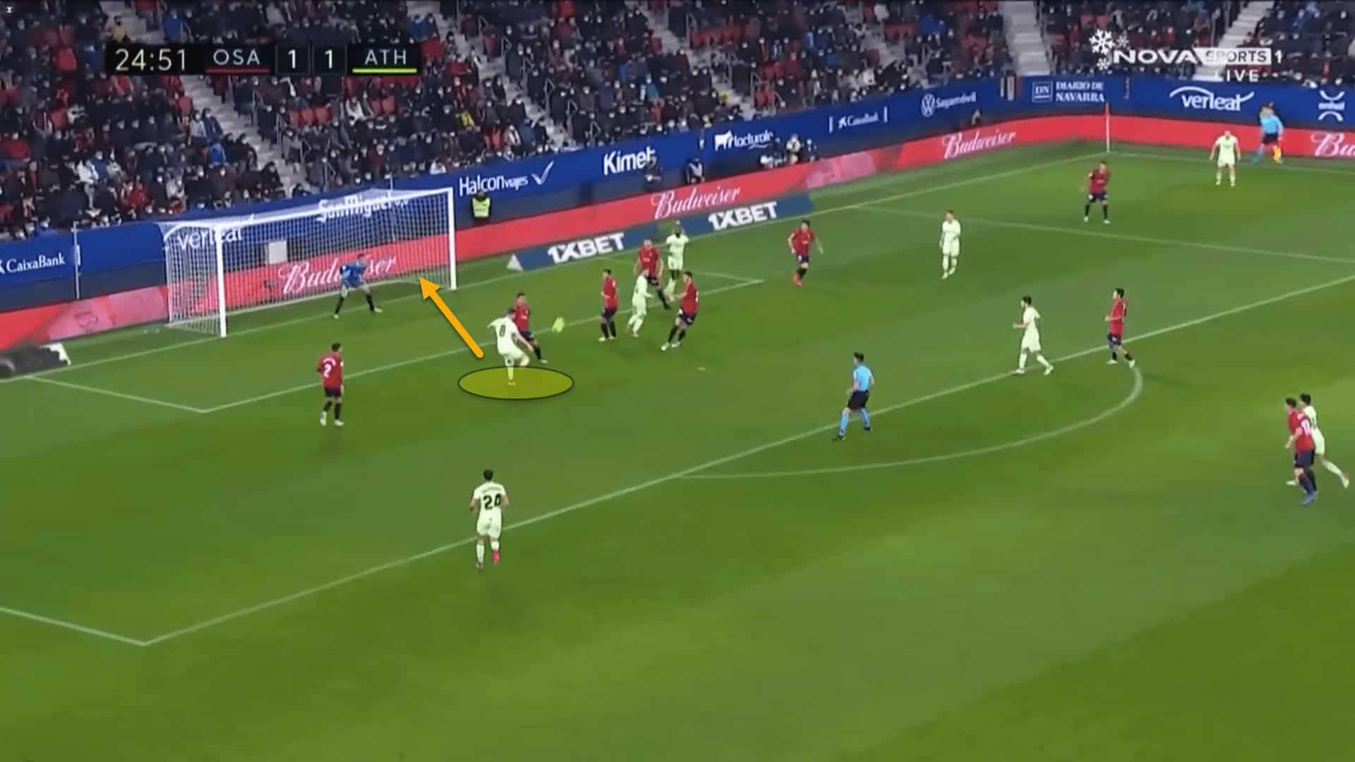 In this situation, Sancet scored a wonderful first-time side-footed volley past the Osasuna goalkeeper.