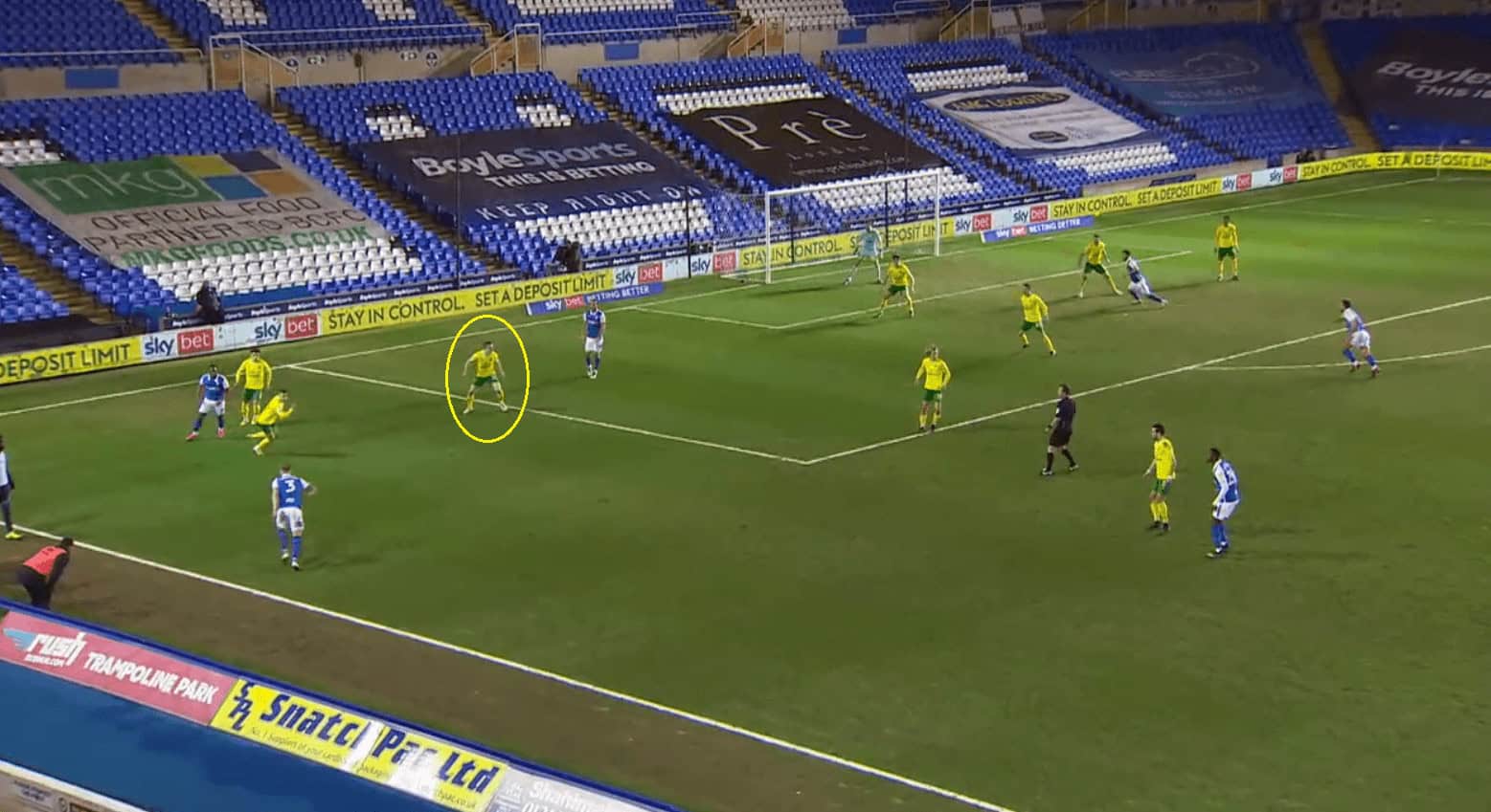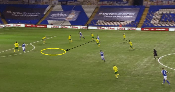 In the example below, Norwich has lost possession of the ball, and Skipp, being the right-sided midfielder, is already away from his position.