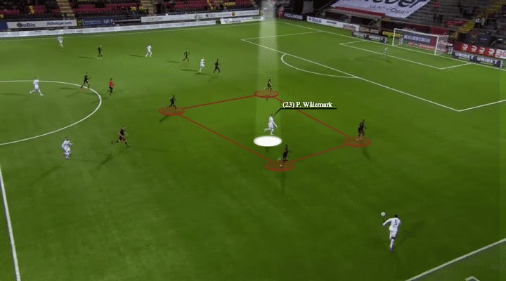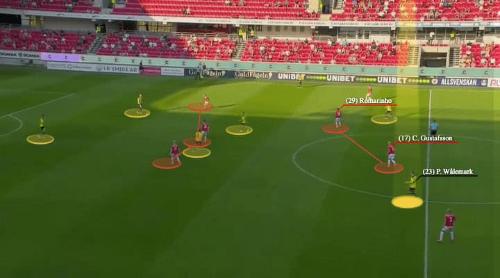 Defensively, Häcken were not a very intense pressing team in Allsvenskan, but regardless of how his team played without possession, this is an area in which Wålemark must improve if he wants to push himself to another level.
