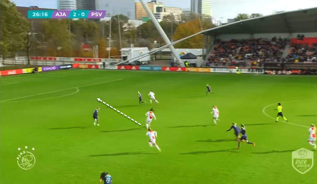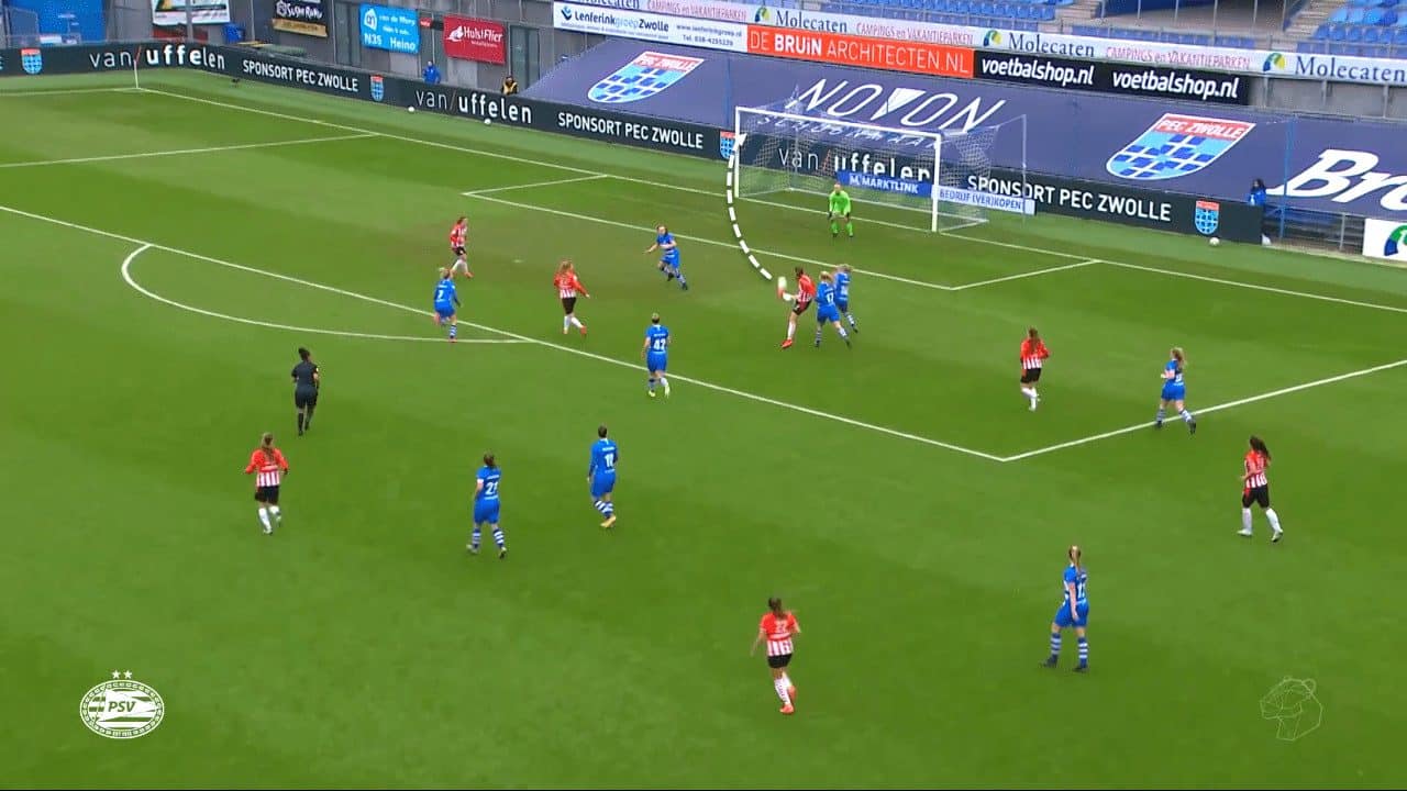 In addition to being a very useful goalscorer, Leuchter is a set-piece specialist at Ajax, and this adds a lot to her usefulness as an attacking player, as excellent set-piece specialists are rare in women’s football. There are plenty of specialists in this regard, but not all score goals regularly from set-pieces.