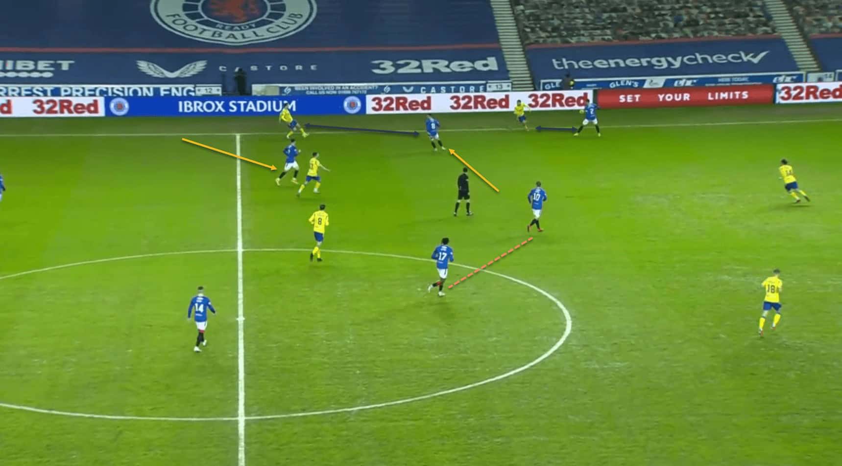 One notable feature of this side of Rangers’ play has been the central midfielders’ willingness to cover for the full-backs and wingers.