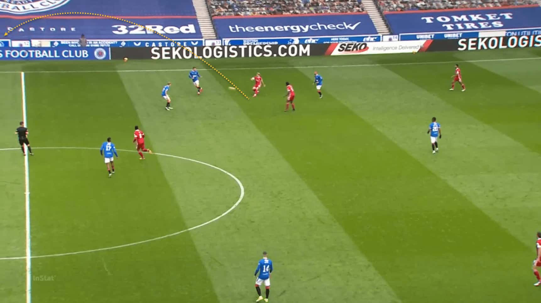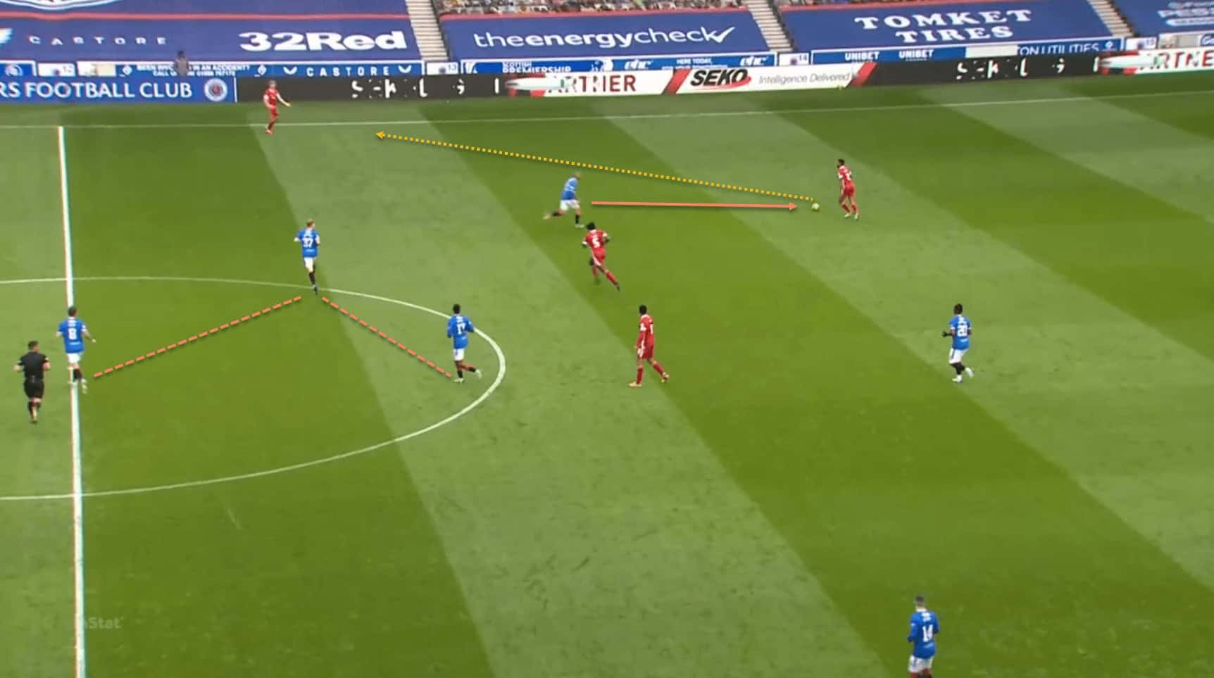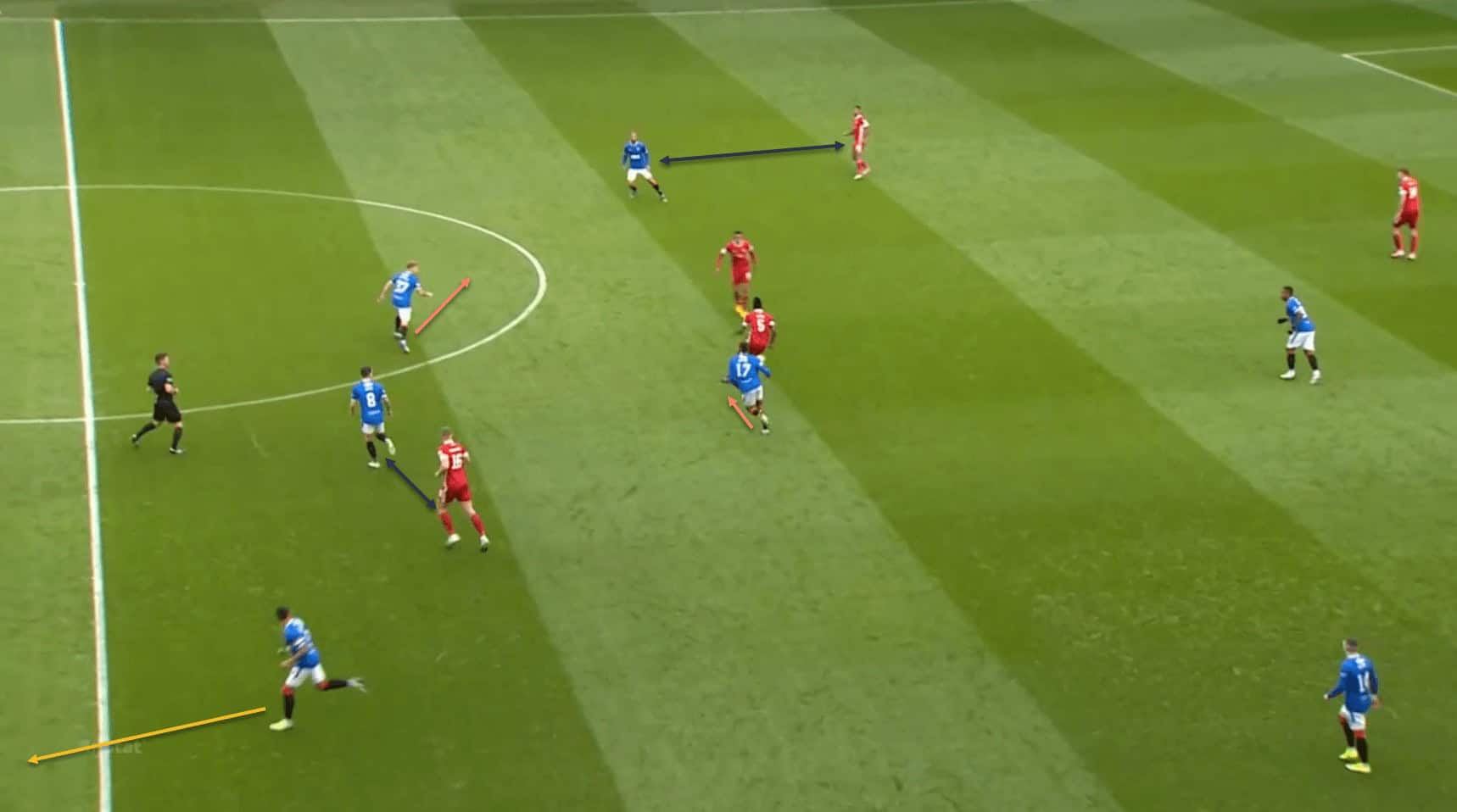 Here, Rangers are pressing high up the pitch, in Aberdeen’s half.