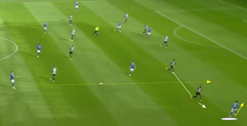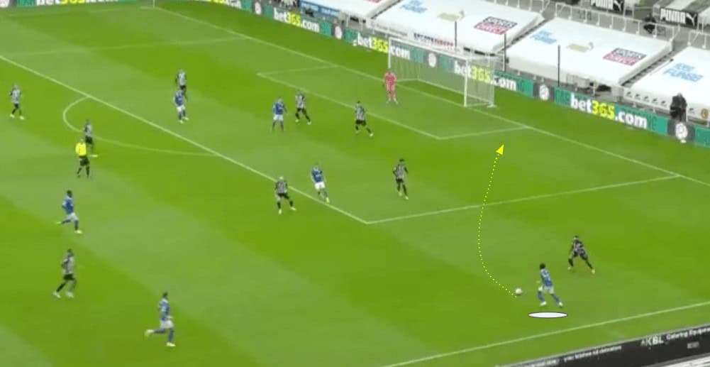 If the opposing defender does decide to pull wide to get tight to Lamptey, it allows the Brighton midfielders to exploit the gap created in the opposition backline. This was exemplified in Brighton’s recent victory at Newcastle. The ball would be fed into the gap created for Lamptey to then make the best use of his electrifying pace to get the ball in behind the defender.