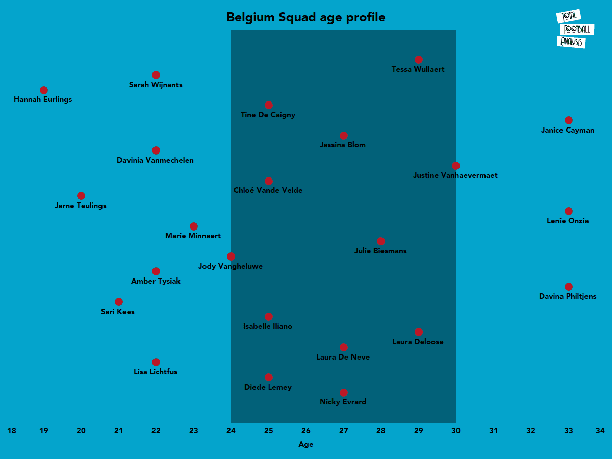 As mentioned earlier, Wullaert and Eurlings are expected to be Belgium’s starting strike partnership. However, Serneels does have options beyond those two, with Tenerife’s Jassina Blom and Anderlecht’s Ella Van Kerkhoven providing proven ability to score goals when entrusted with doing so, whether that be starting centrally or out wide. Also selected in the provisional squad are younger options alongside Eurlings (19 years old), with Davinia Vanmechelen, Jarne Teulings, and Jill Janssens all under 23 years old and capable of playing in midfield.