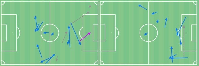 This is a great example of how players need to recognise when to run to receive possession and when their movement can still be beneficial for the team despite not resulting in a received pass. But that is not to say that Barbera never receives possession or links up play when dropping deeper. The following examples will show us that is not the case.