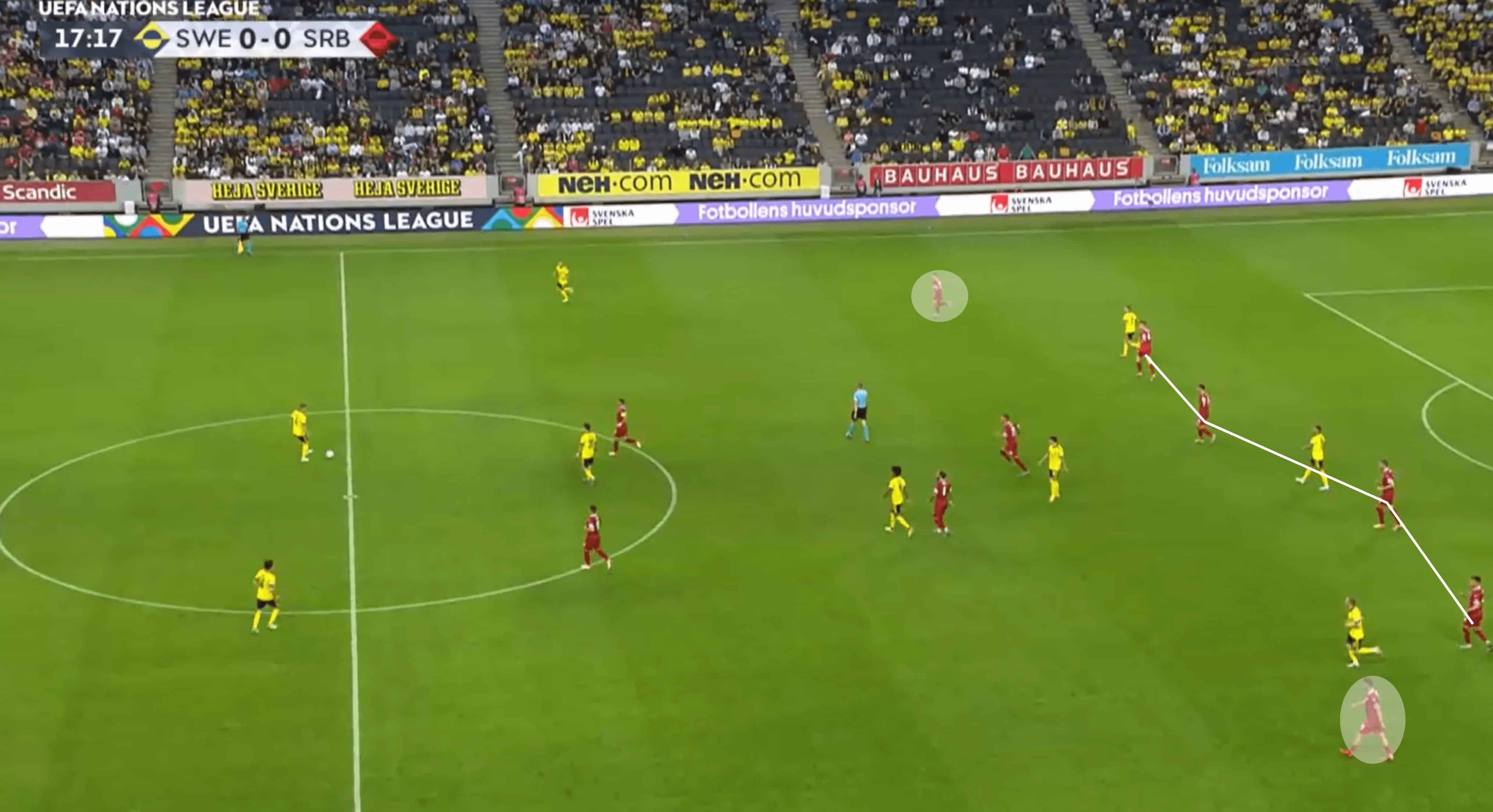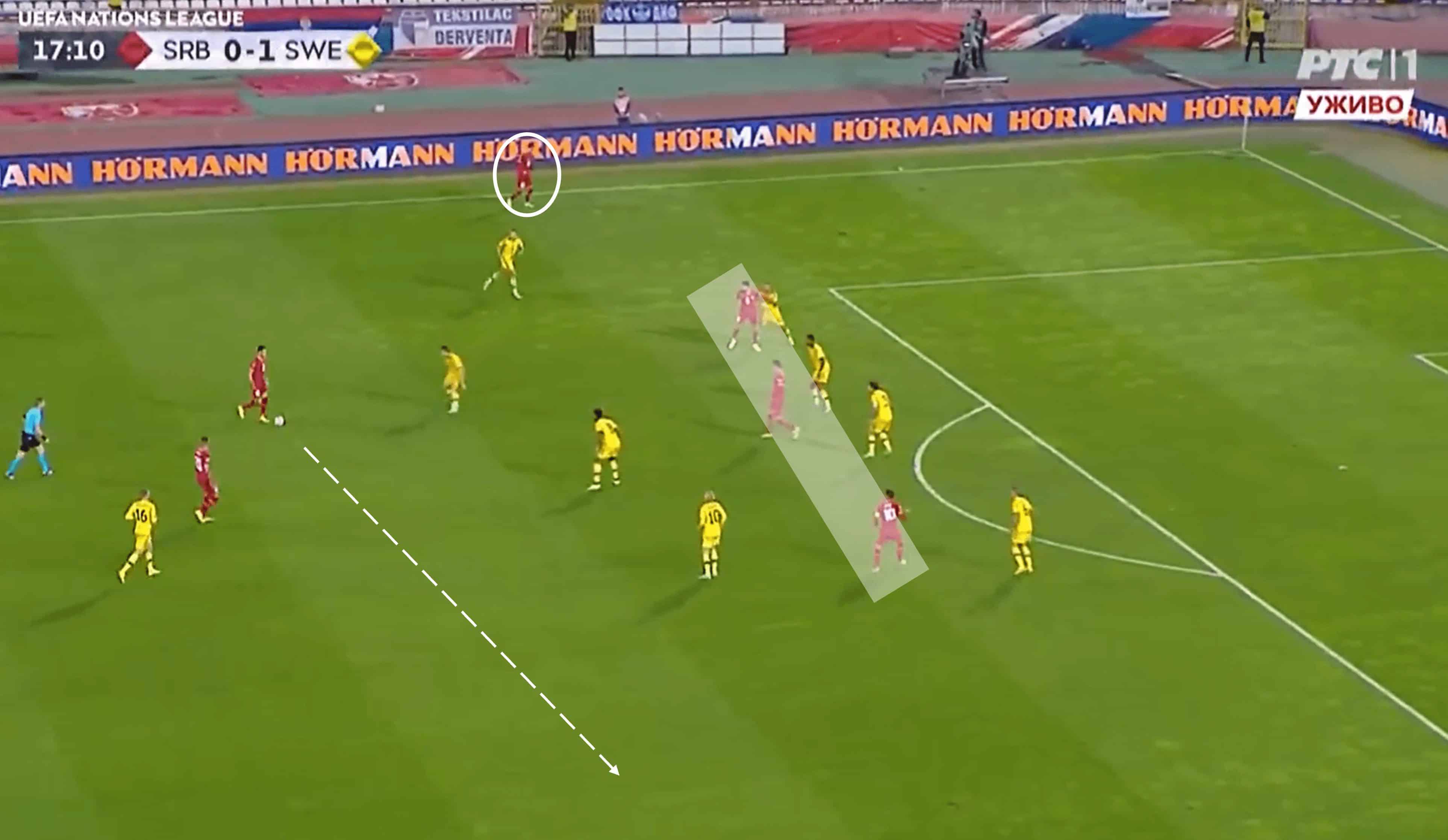 A line-breaking pass is fired into Kostić as he finds himself in an unbelievable amount of space, giving Serbia the chance to take the attack to the next level.
