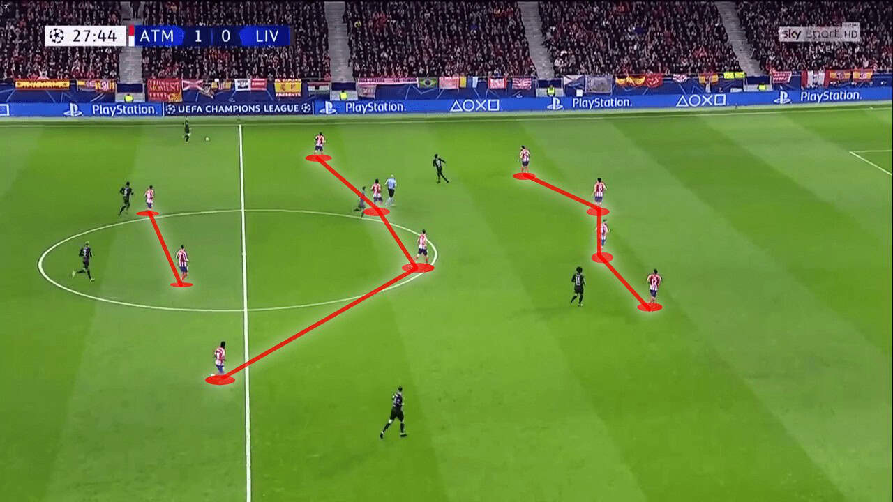 As can be seen here, particularly in the case of Atlético Madrid, one wide midfielder plays in a more advanced position.